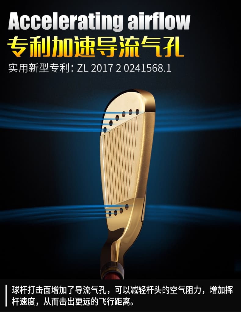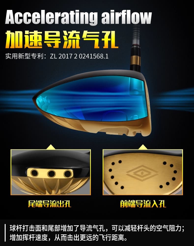 球杆打击面和尾部增加了导流气孔,