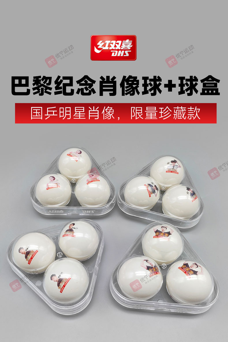 DHS红双喜 国乒肖像乒乓球带盒子 陈梦孙颖莎王楚钦马龙肖像纪念球 限量头像球 三粒装