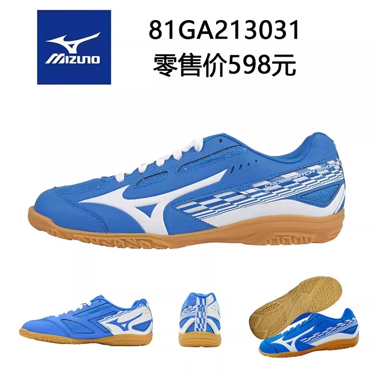 MIZUNO美津浓 乒乓球鞋 男女同款乒乓球运动鞋 81GA213031 透气防滑训练鞋 蓝色/白色