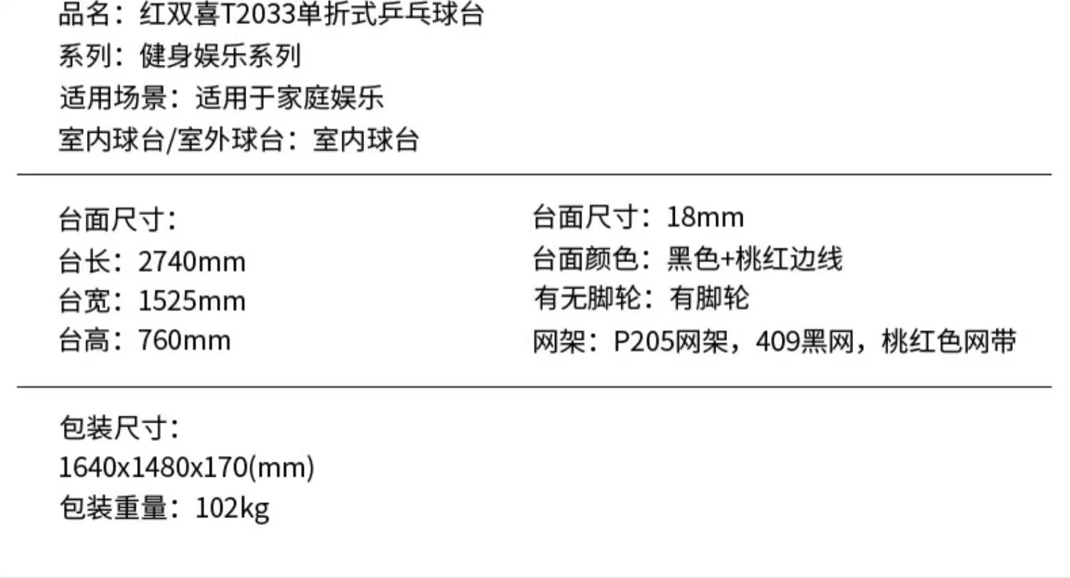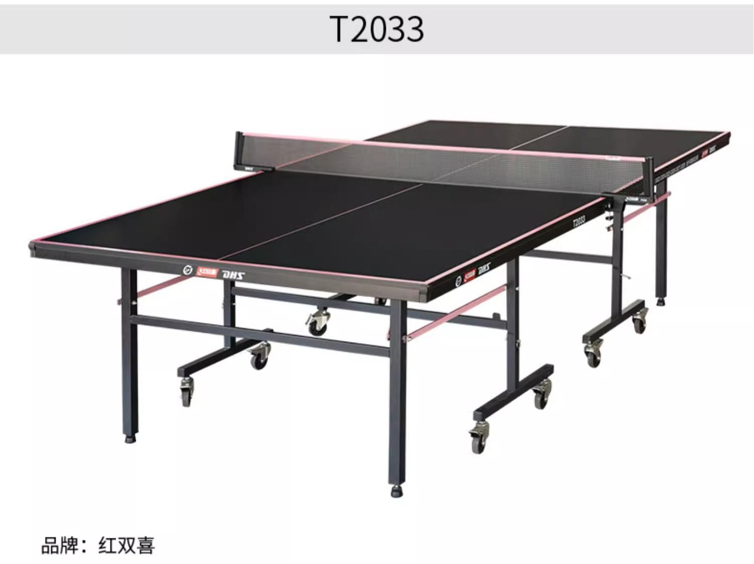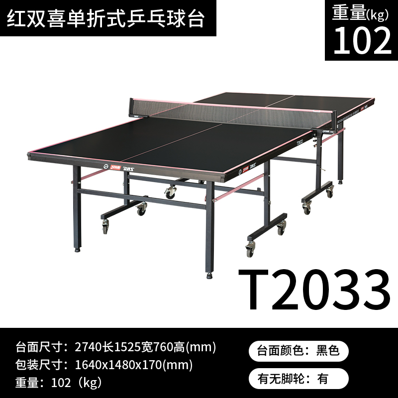 DHS红双喜 乒乓球台 单折式乒乓球桌 巴黎同款配色台面 T2033 带脚轮可移动专业比赛球台 标准室内家用训练乒乓球桌