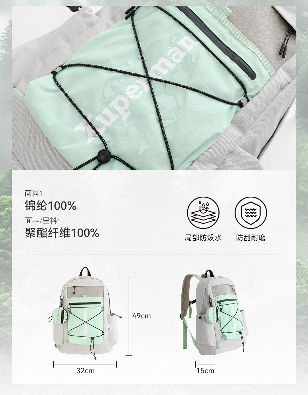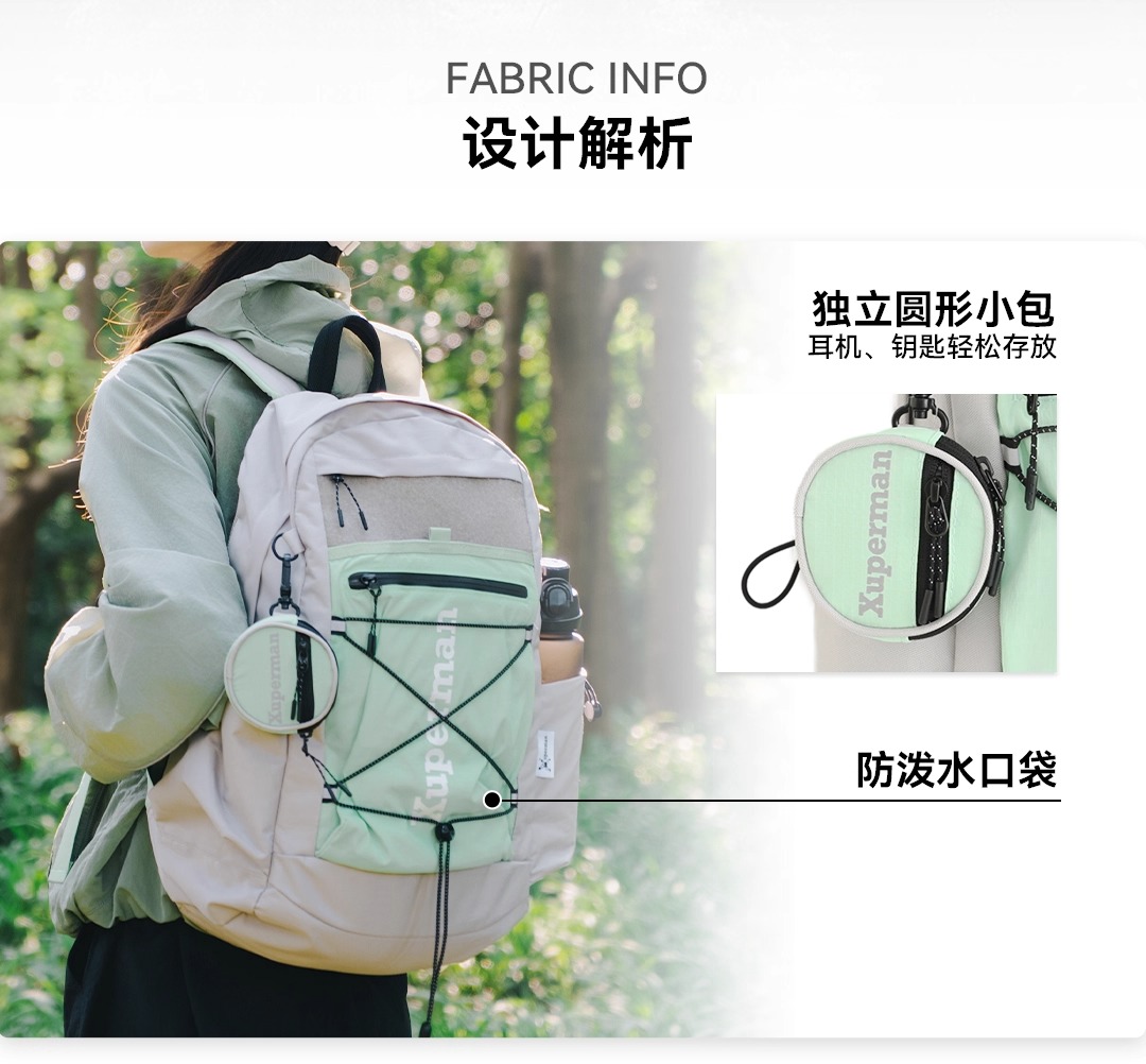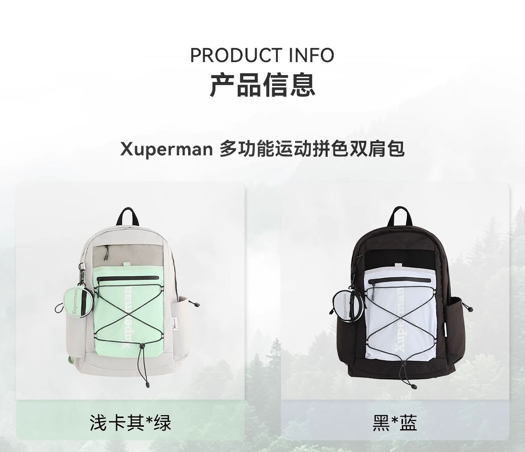 Xuperman 多功能运动拼色双肩包 户外旅行双肩包 男女露营登山包 休闲轻便大容量背包 XU5SSBA001 浅卡其*绿