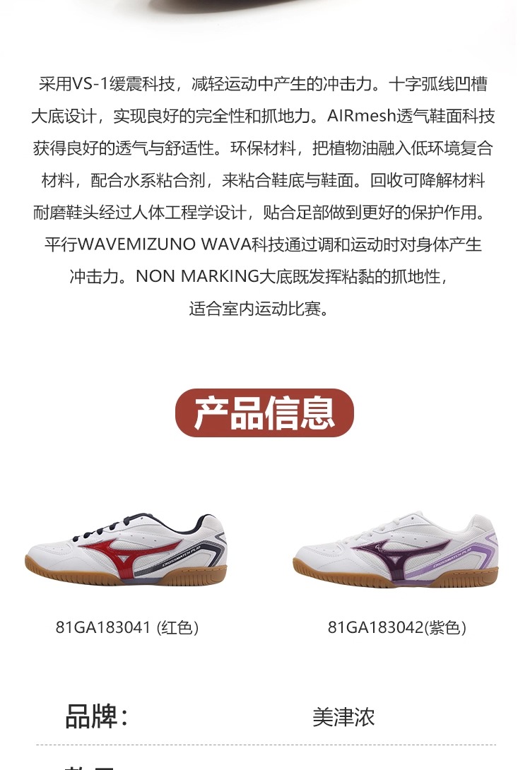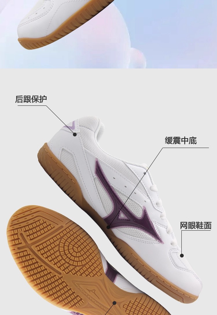 MIZUNO美津浓 乒乓球鞋 男女同款乒乓球运动鞋 透气防滑训练鞋 81GA183042 白紫