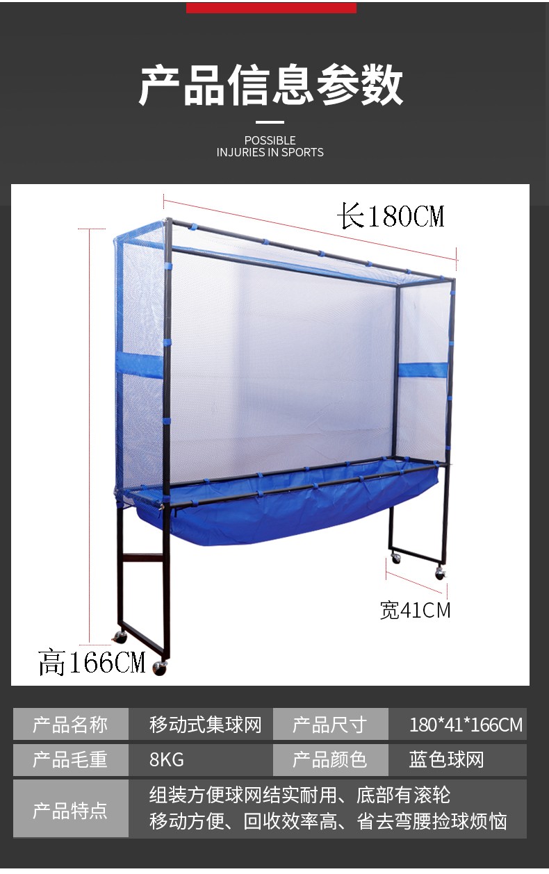 SUNFLEX德国阳光 全包围集球网 乒乓球接球网落地式 移动式集球器 便携式可移动回收网 蓝色