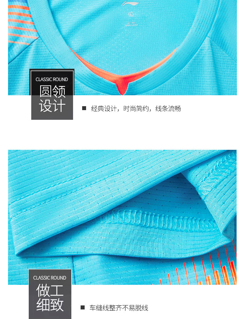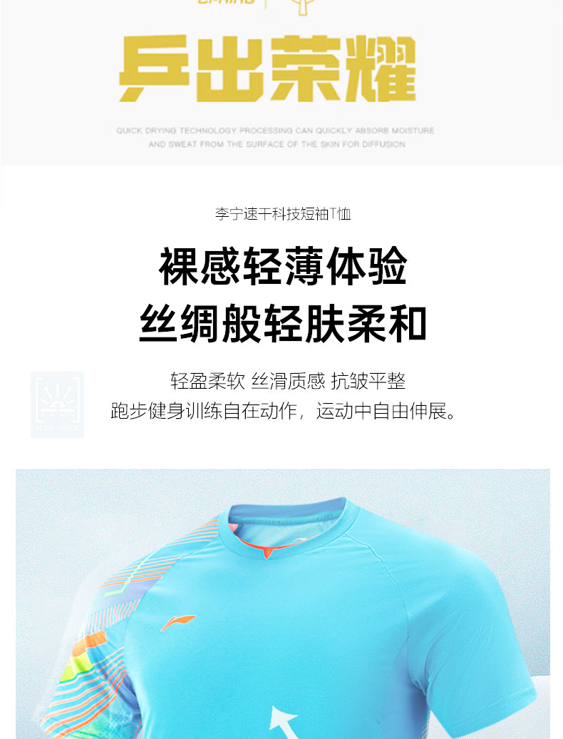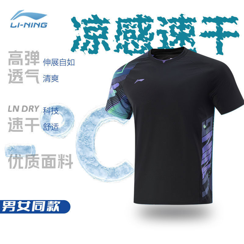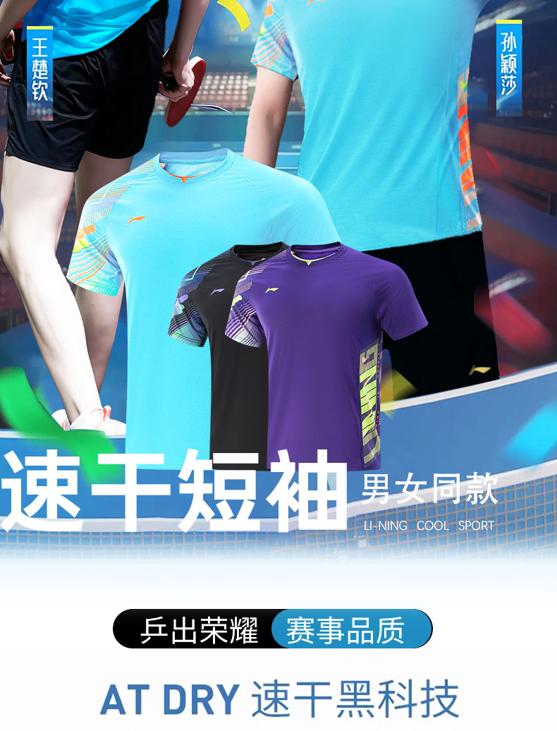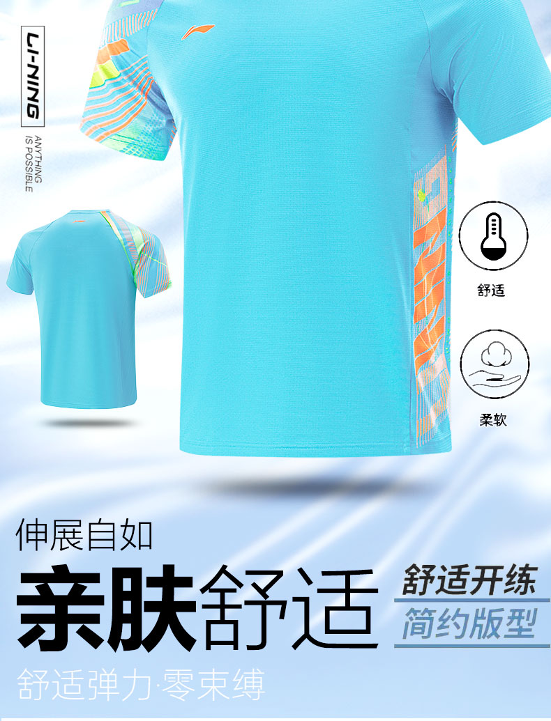LINING李宁 乒乓球服 专业乒乓球比赛上衣 2025新款速干短袖 国家队同款比赛服 男女同款乒乓球比赛服 AAYV119-2 海豚蓝