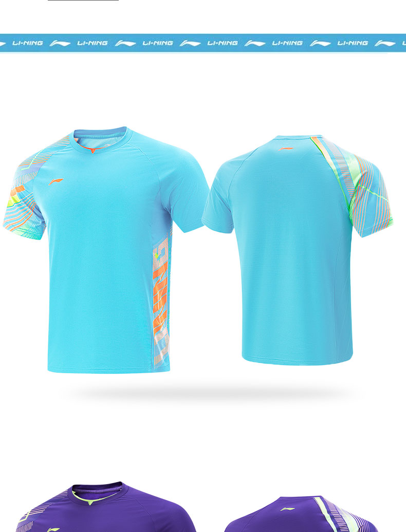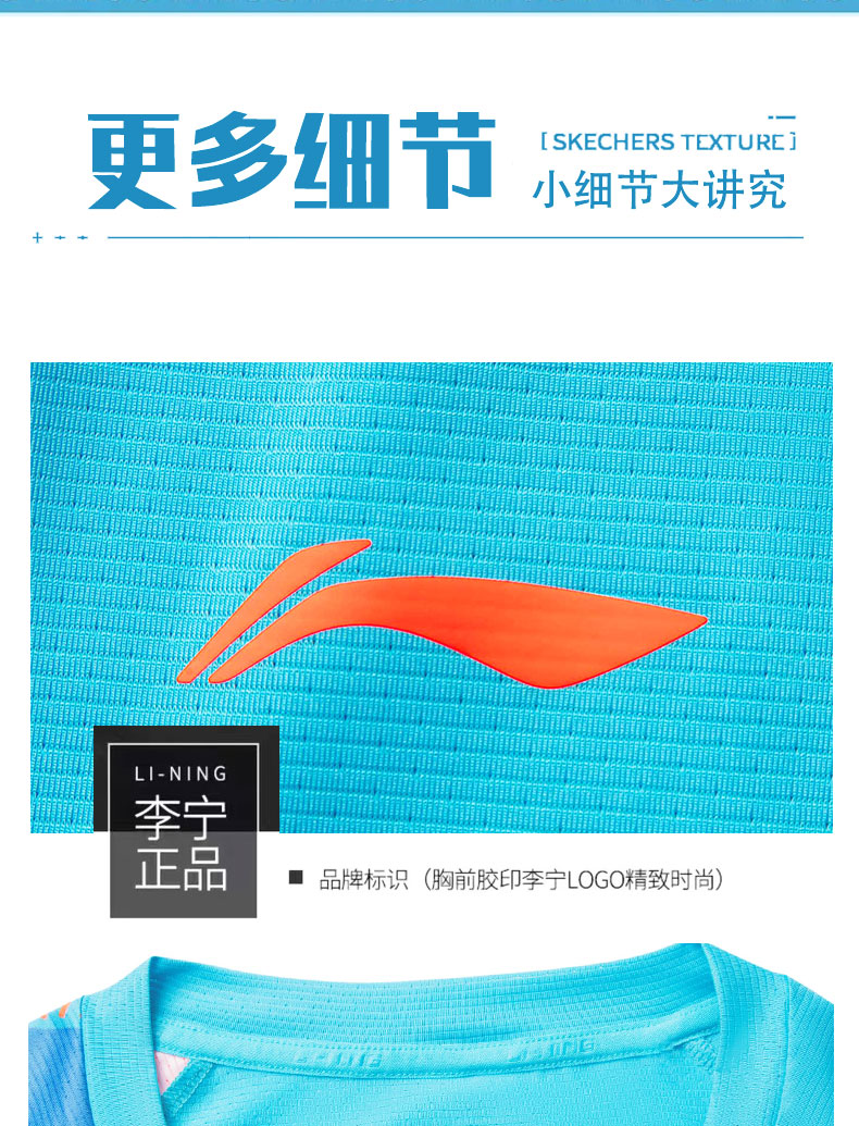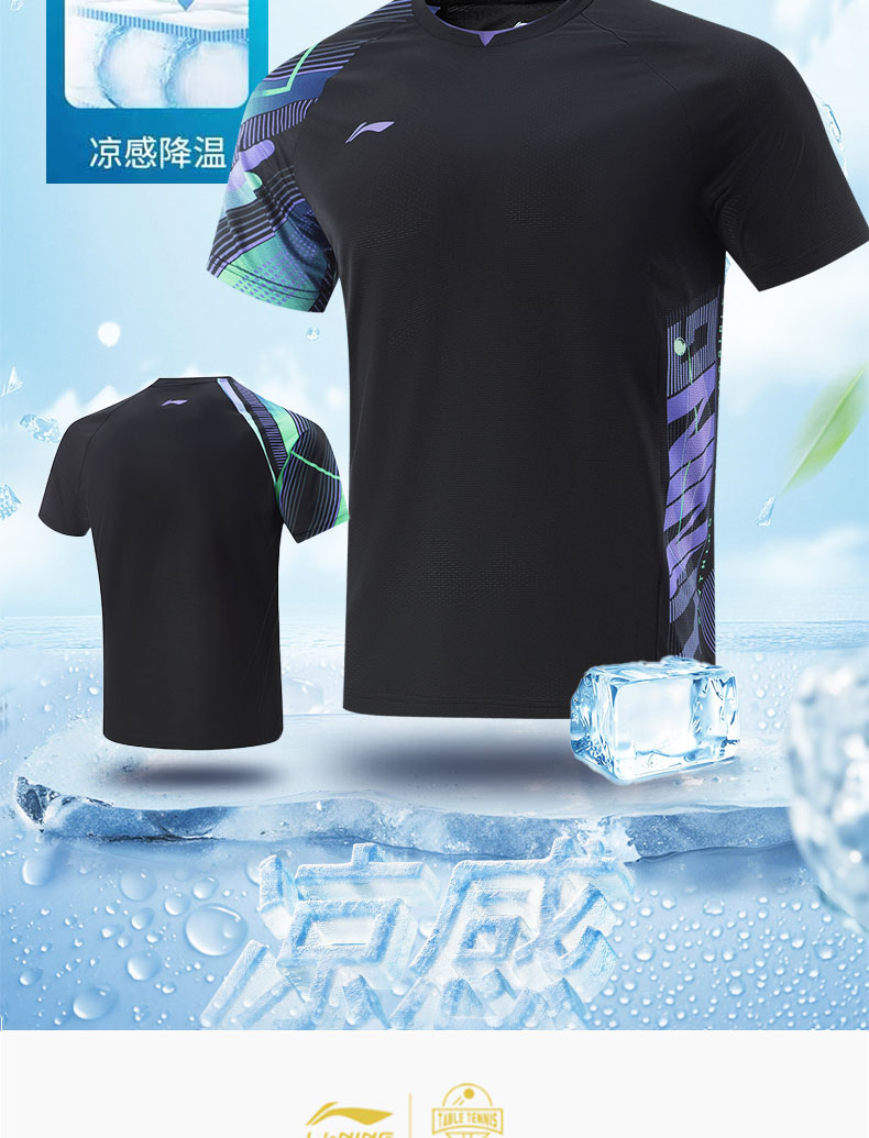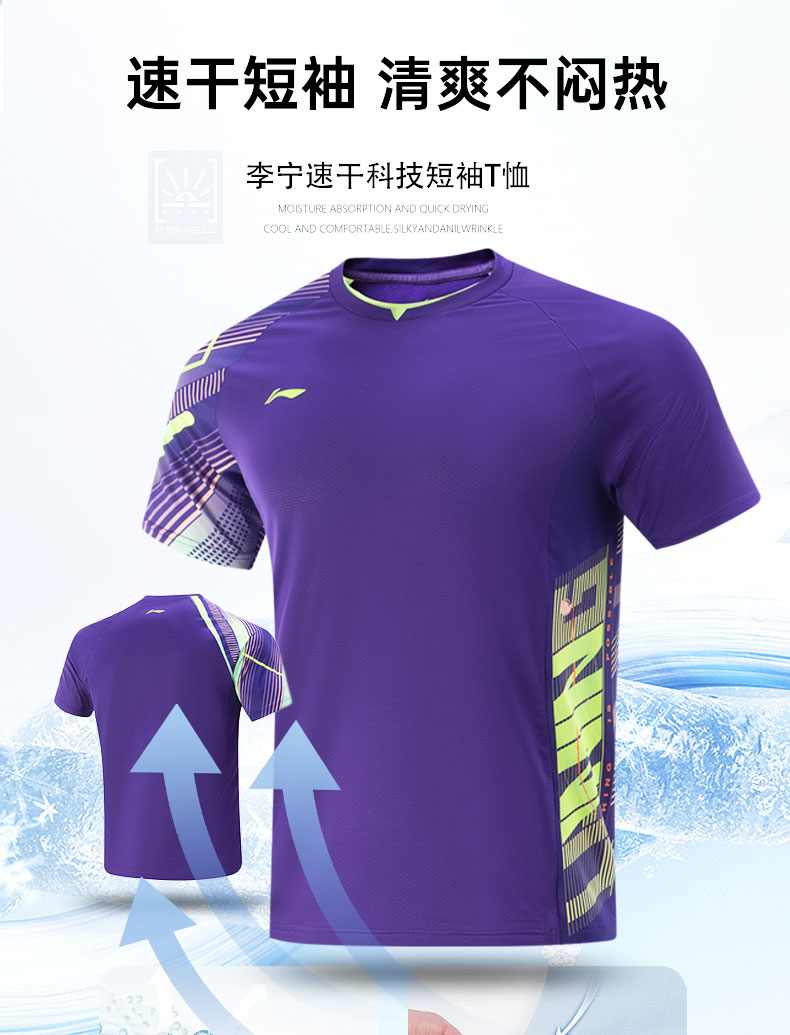 LINING李宁 乒乓球服 专业乒乓球比赛上衣 2025新款速干短袖 国家队同款比赛服 男女同款乒乓球比赛服 AAYV119-2 海豚蓝