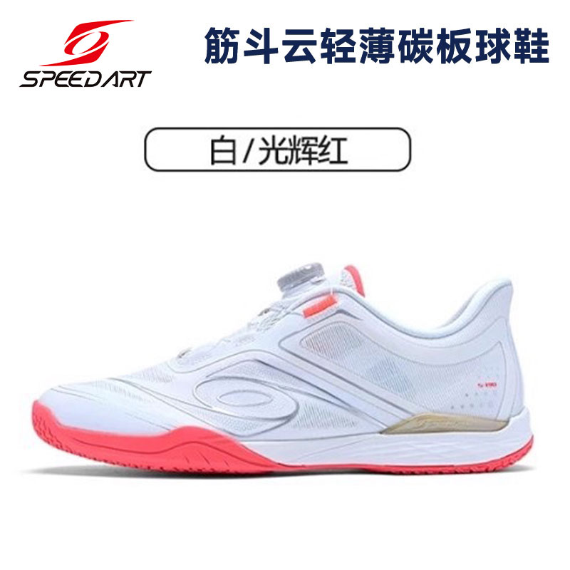 SPEEDART速搏特 乒乓球鞋 筋斗云轻薄碳板球鞋 2025新款专业乒乓球鞋 男女纽扣BOA免系带透气运动鞋 ST-28031 白光辉红