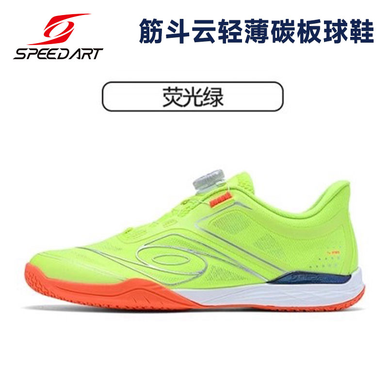 SPEEDART速搏特 乒乓球鞋 筋斗云轻薄碳板球鞋 2025新款专业乒乓球鞋 男女纽扣BOA免系带透气运动鞋 ST-28031 荧光绿