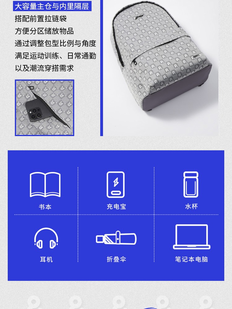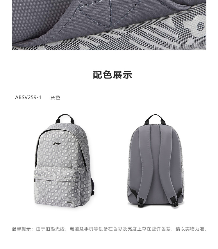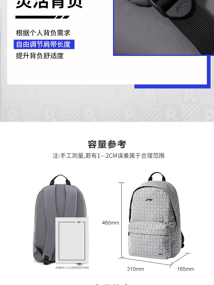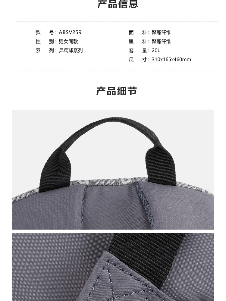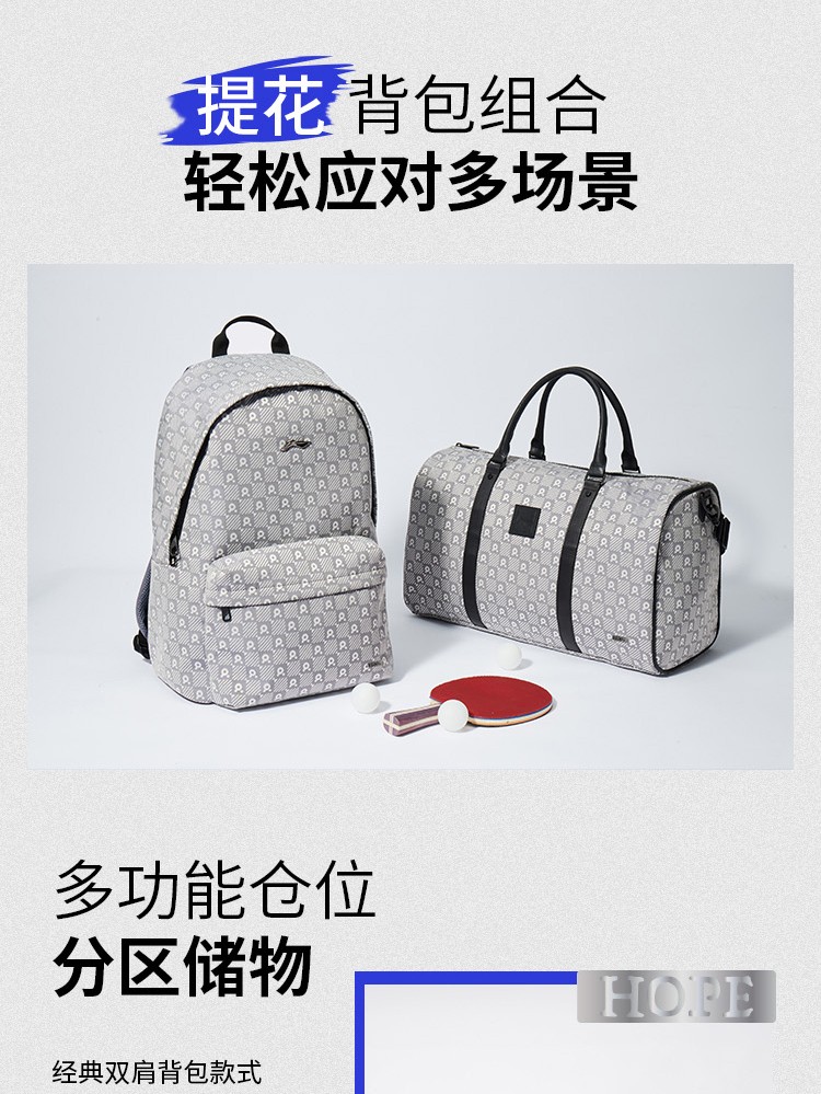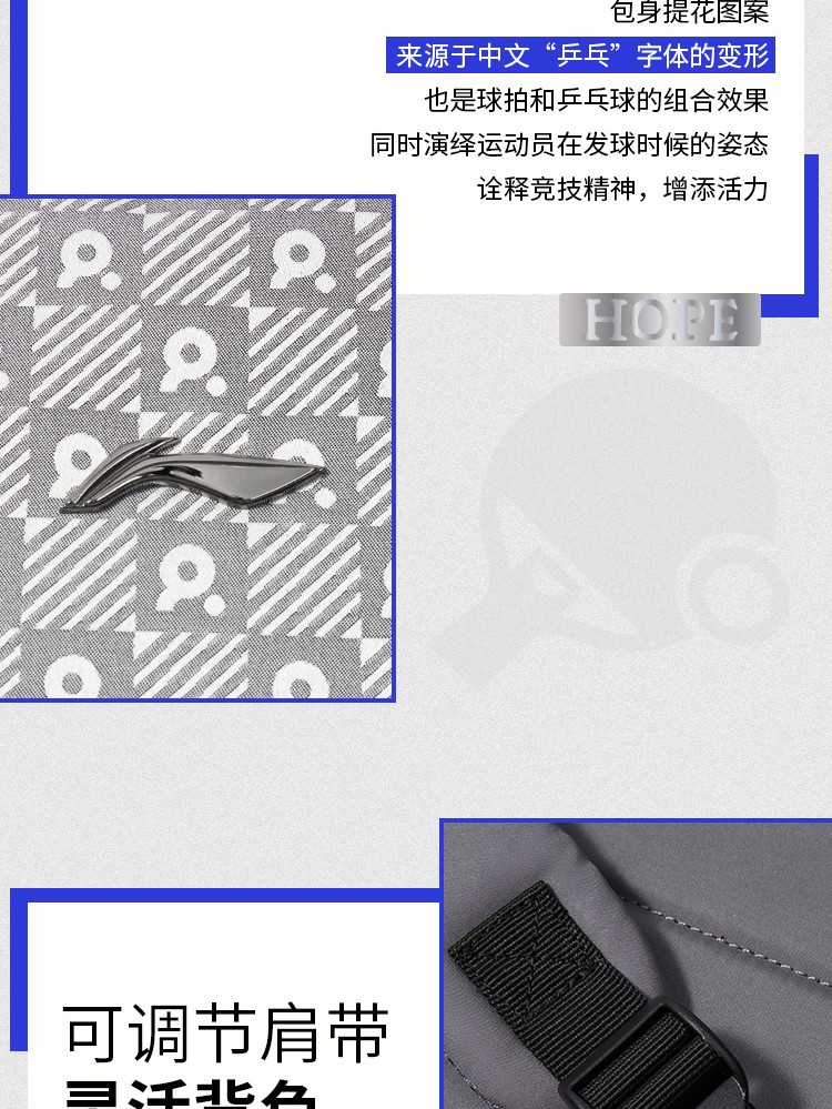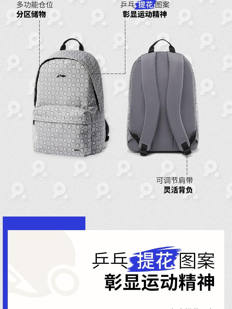 LINING李宁 乒乓球包 王楚钦同款背包 国家队同款 训练装备包 男女款运动双肩包 ABSV259-1 灰色