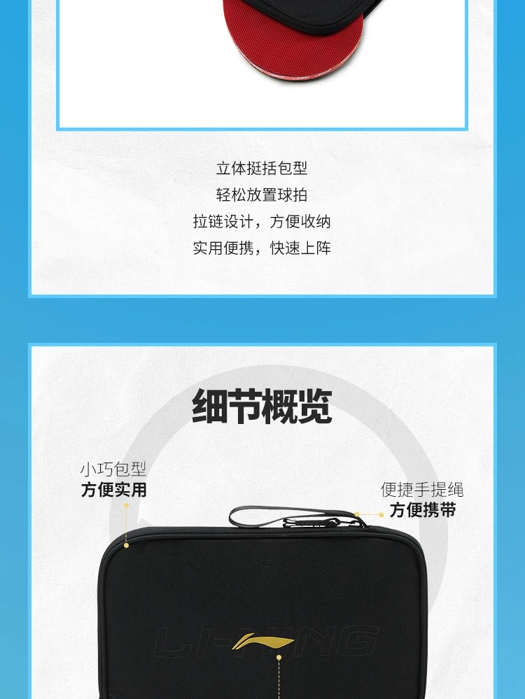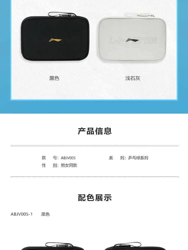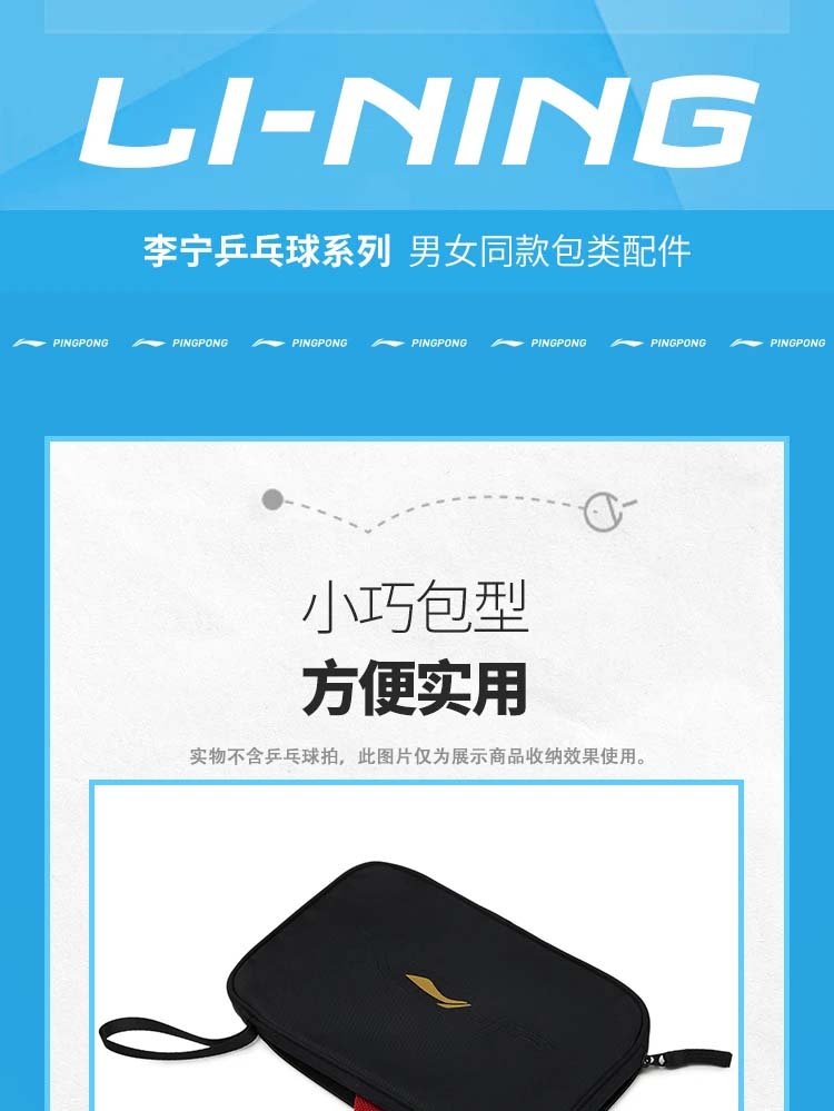 LINING李宁 乒乓球拍套 单层专业方形拍包 乒乓球拍子收纳包 薄款轻量拍套 ABJV005 双色可选