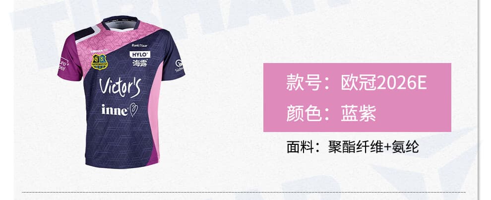 TIBHAR挺拔 乒乓球服 2026欧冠短袖运动款 运动比赛训练服 2026E 蓝紫 透爽解闷,排汗速干,四面弹力