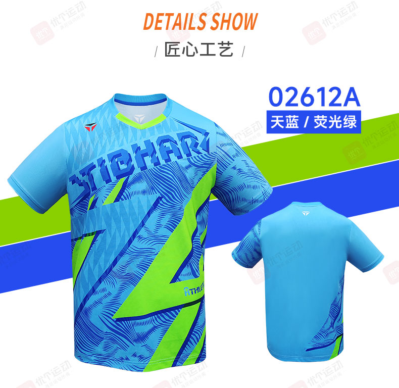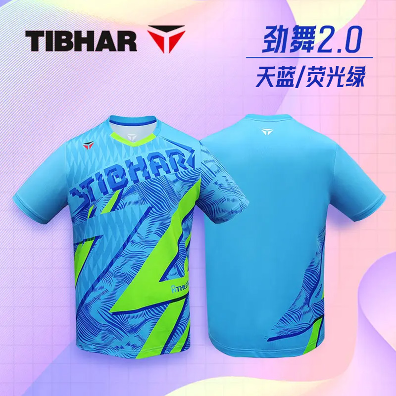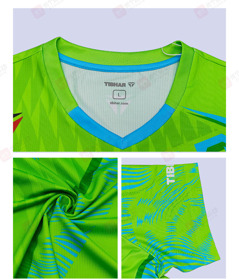TIBHAR挺拔 乒乓球服 圆领运动T恤 男女同款速干运动上衣 劲舞2.0 02612B 草绿/亮紫色 撞色设计,活力吸睛,运动时尽显张扬个性