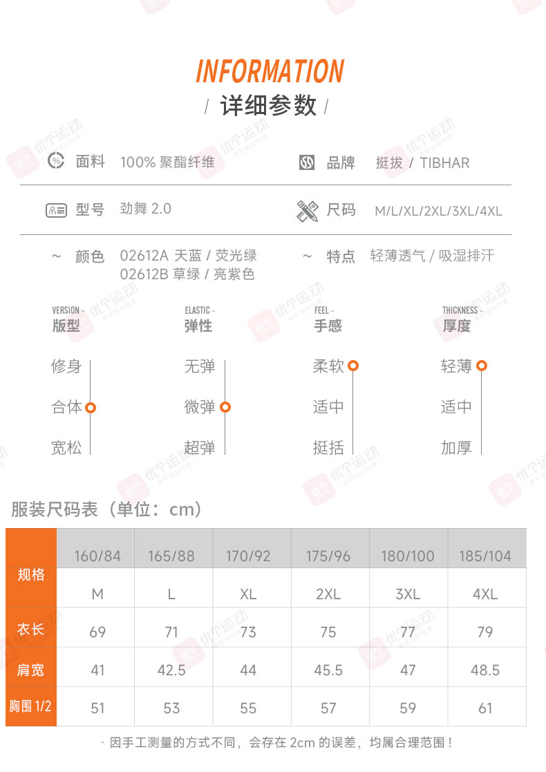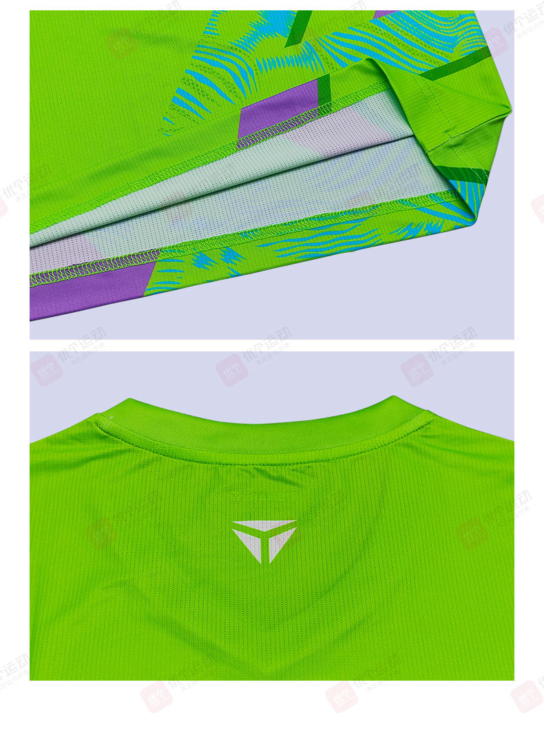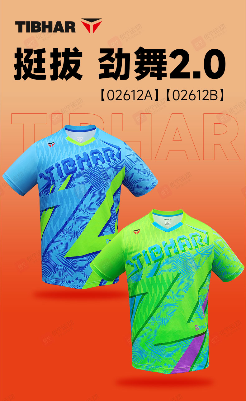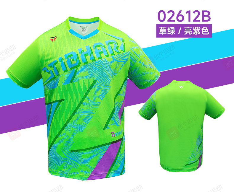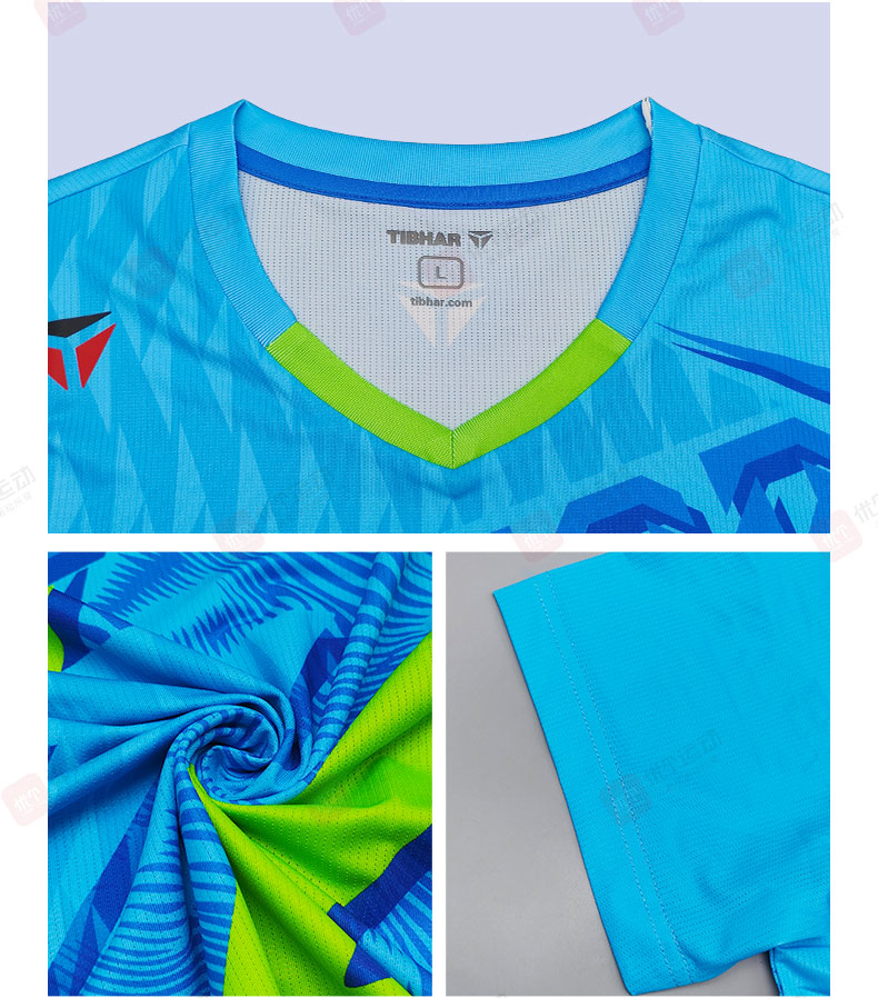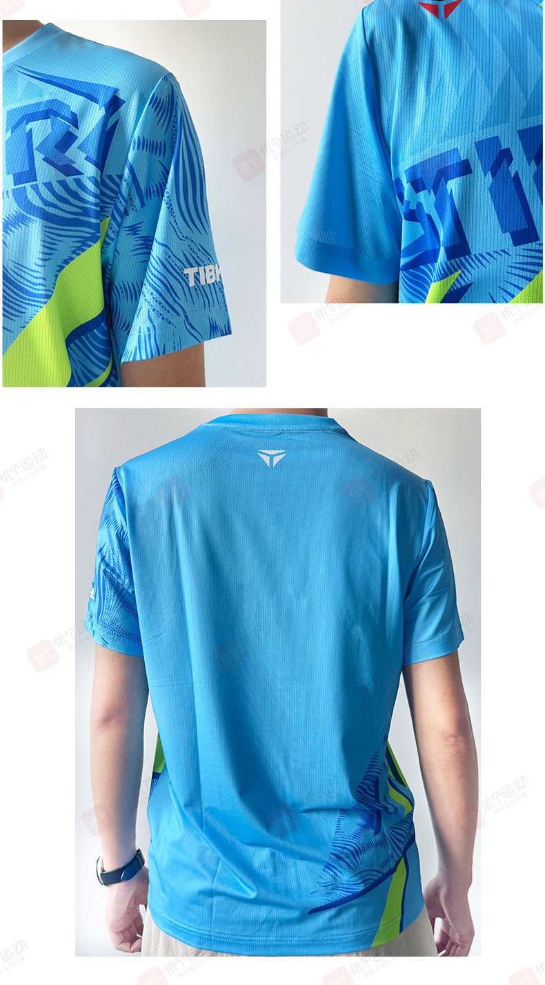 TIBHAR挺拔 乒乓球服 圆领运动T恤 男女同款速干运动上衣 劲舞2.0 02612A 天蓝/荧光绿 撞色设计,活力吸睛,运动时尽显张扬个性
