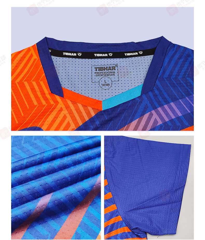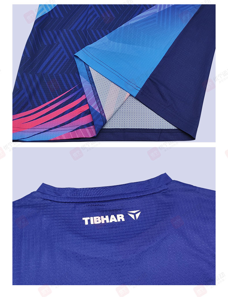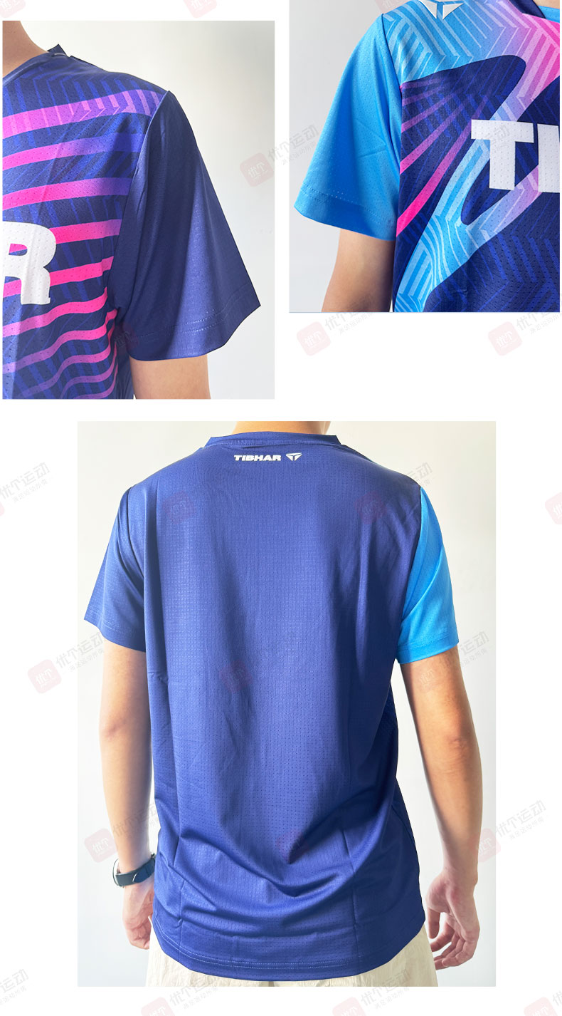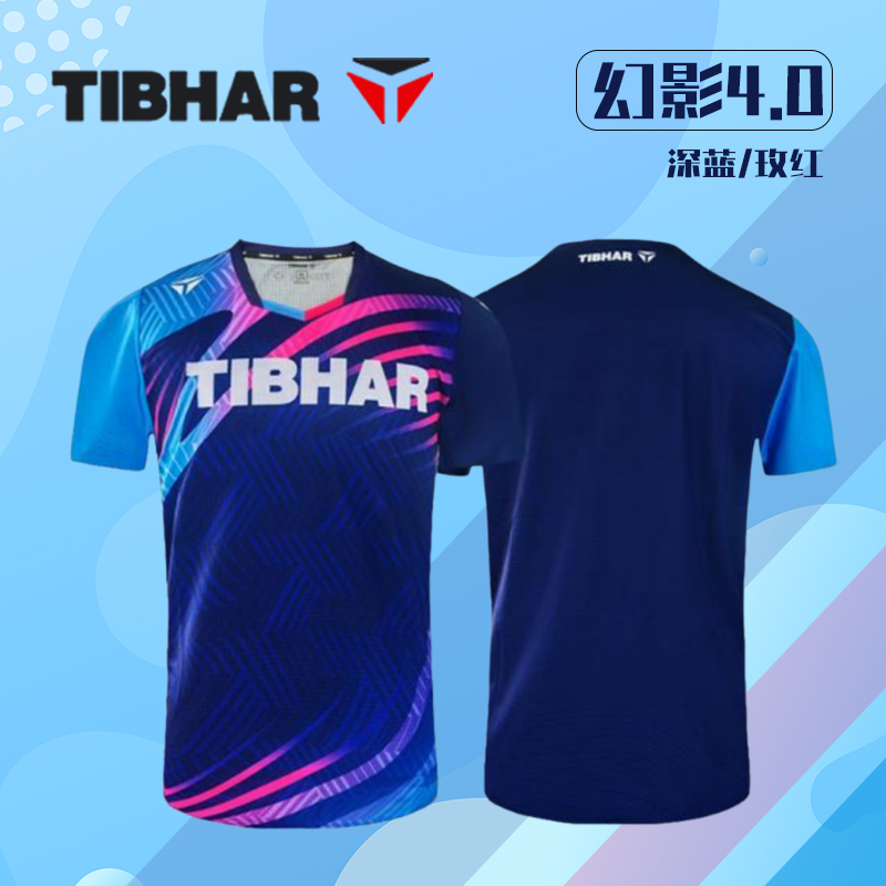 TIBHAR挺拔 乒乓球球服 男女同款运动短袖 乒乓比赛训练短袖上衣 幻影4.0 深蓝/玫红