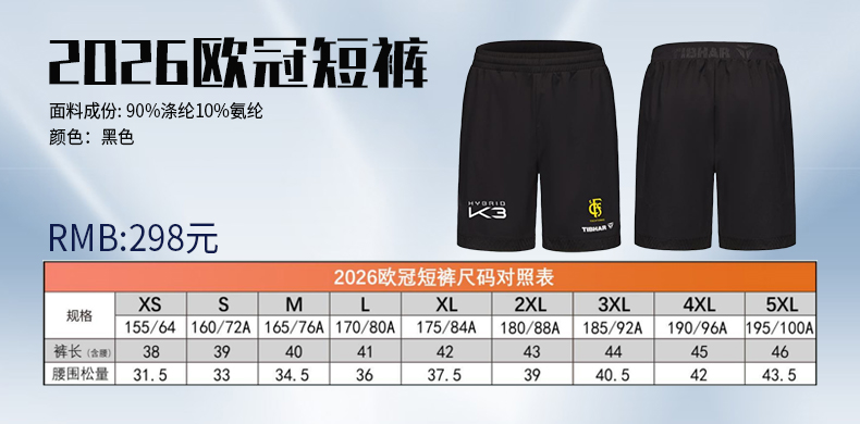 TIBHAR挺拔 乒乓球短裤 透气速干运动短裤 2026欧冠短裤 排汗比赛短裤 舒适有弹性,简约又百搭