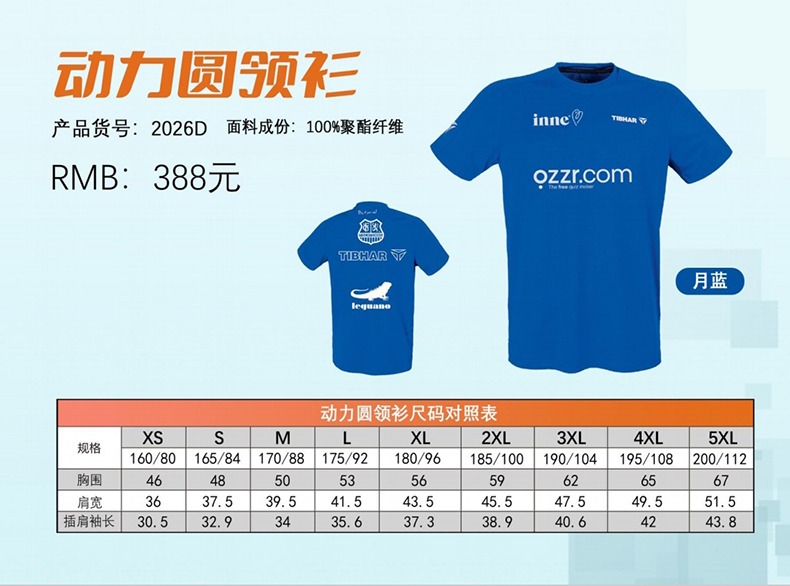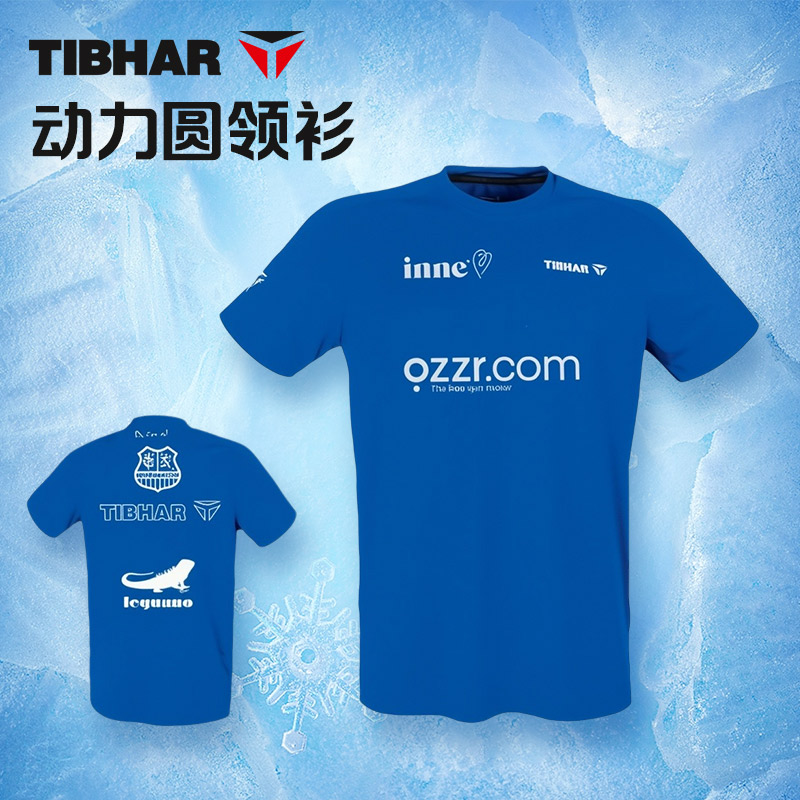 TIBHAR挺拔 乒乓球球服 男女同款运动短袖 乒乓比赛训练短袖上衣 动力圆领衫 月蓝色