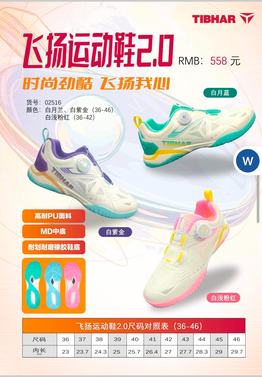 TIBHAR挺拔 乒乓球鞋 专业透气训练 旋钮设计乒乓运动鞋 飞扬运动鞋2.0 02516 白月蓝 时尚劲酷,飞扬我心!