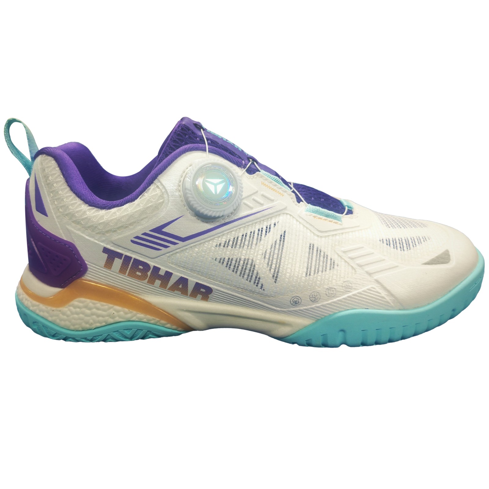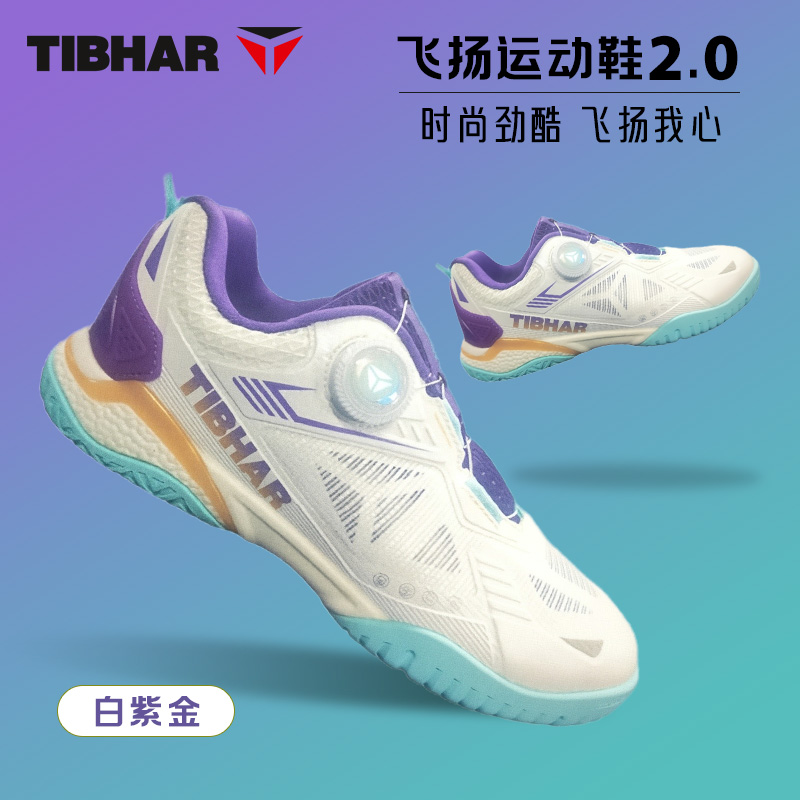 TIBHAR挺拔 乒乓球鞋 专业透气训练 旋钮设计乒乓运动鞋 飞扬运动鞋2.0 02516 白紫金 时尚劲酷,飞扬我心!