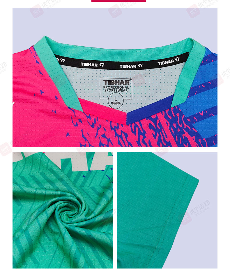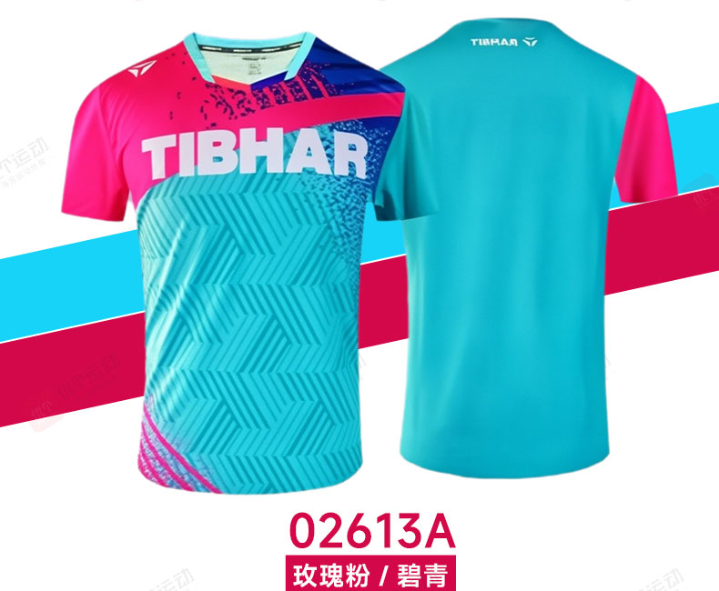TIBHAR挺拔 乒乓球球服 男女同款运动短袖 乒乓比赛训练短袖上衣 璀璨4.0 玫瑰粉/碧青 撞色吸睛,时尚又活力,助你运动时尽显风采
