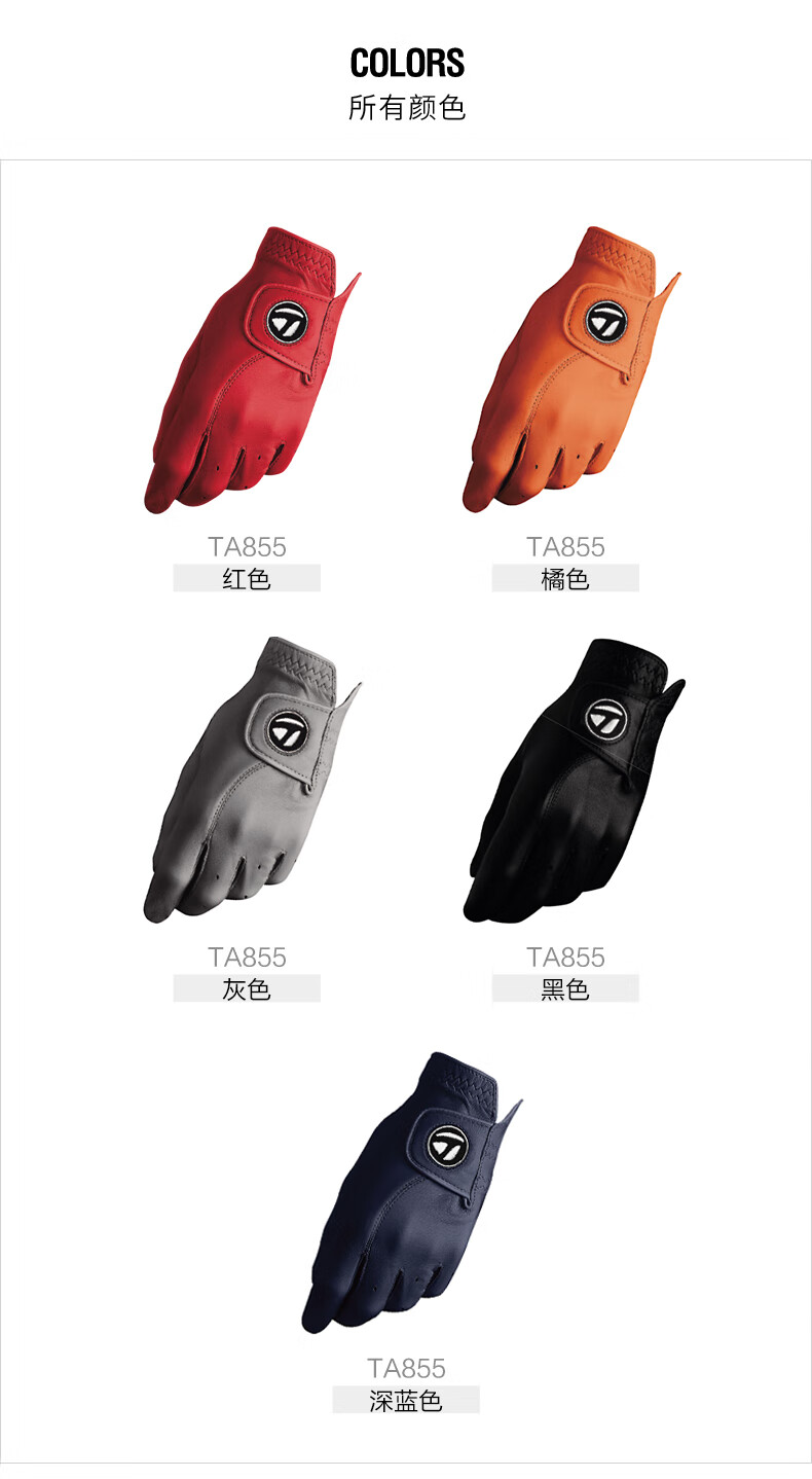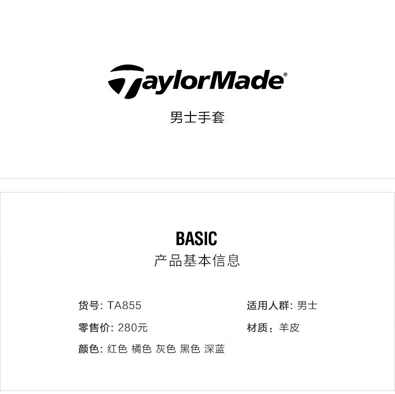 TaylorMade泰勒梅 高尔夫手套 男士左手单支小羊皮 TA855 泰勒梅高尔夫男tp款职业选手同款左手单支小羊皮轻薄款