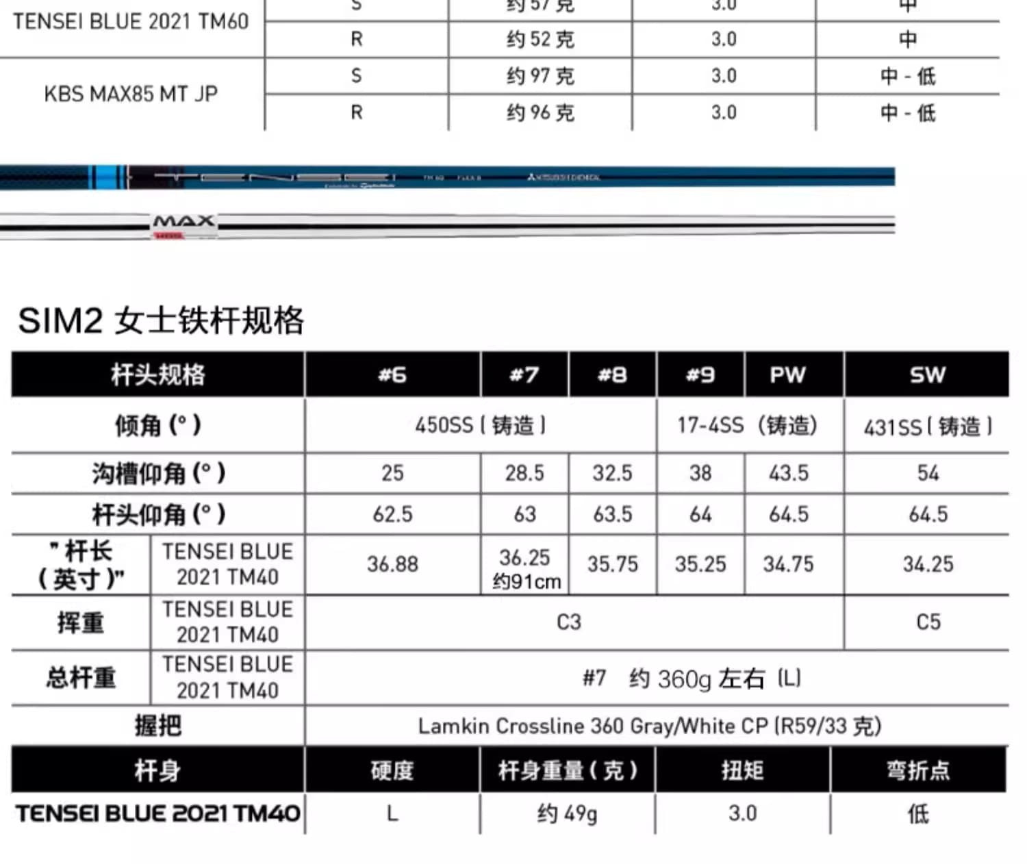 TaylorMade泰勒梅 高尔夫球杆 男女SIM2初学练习七号铁杆单支 SIM2 MAX