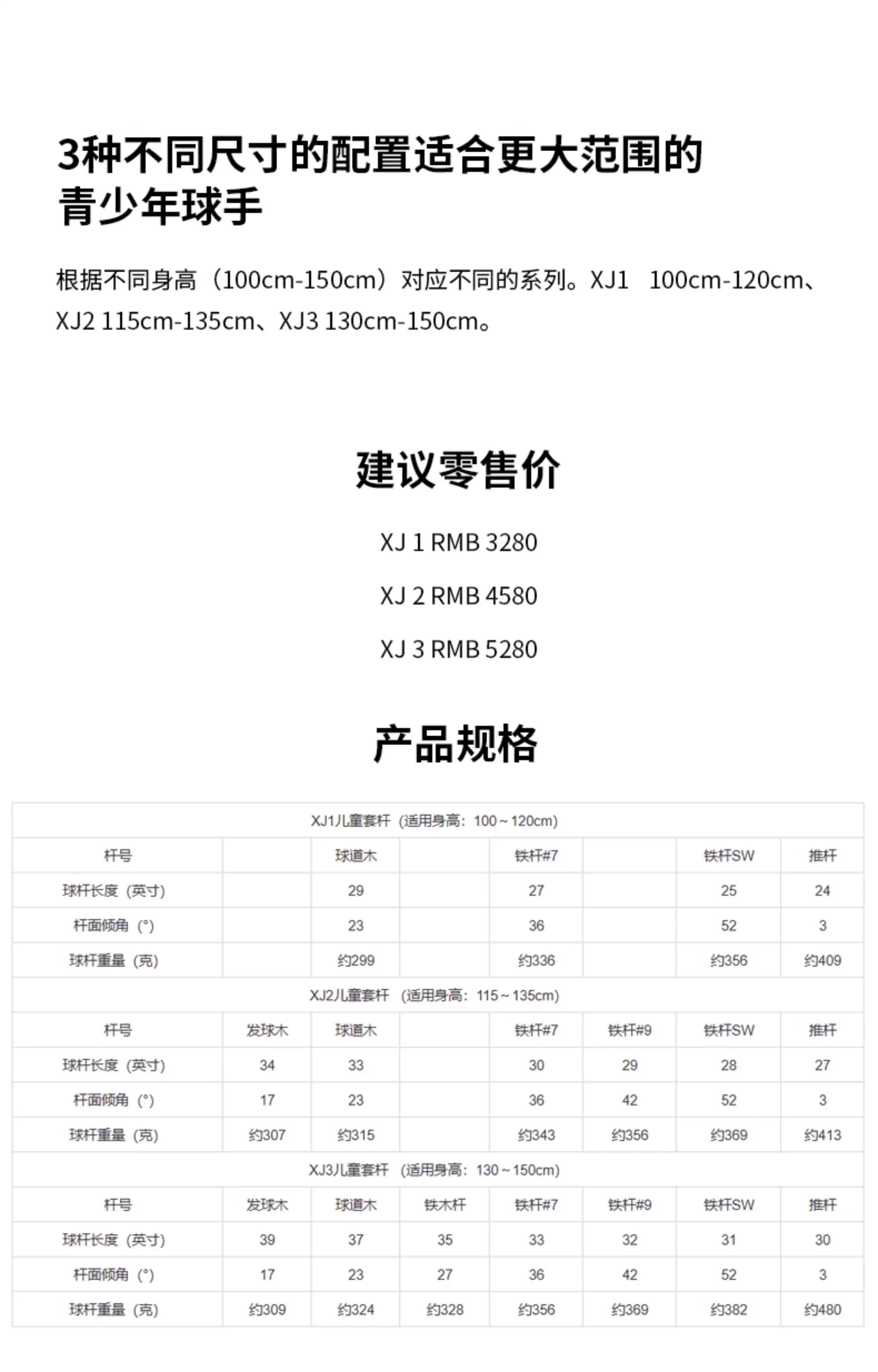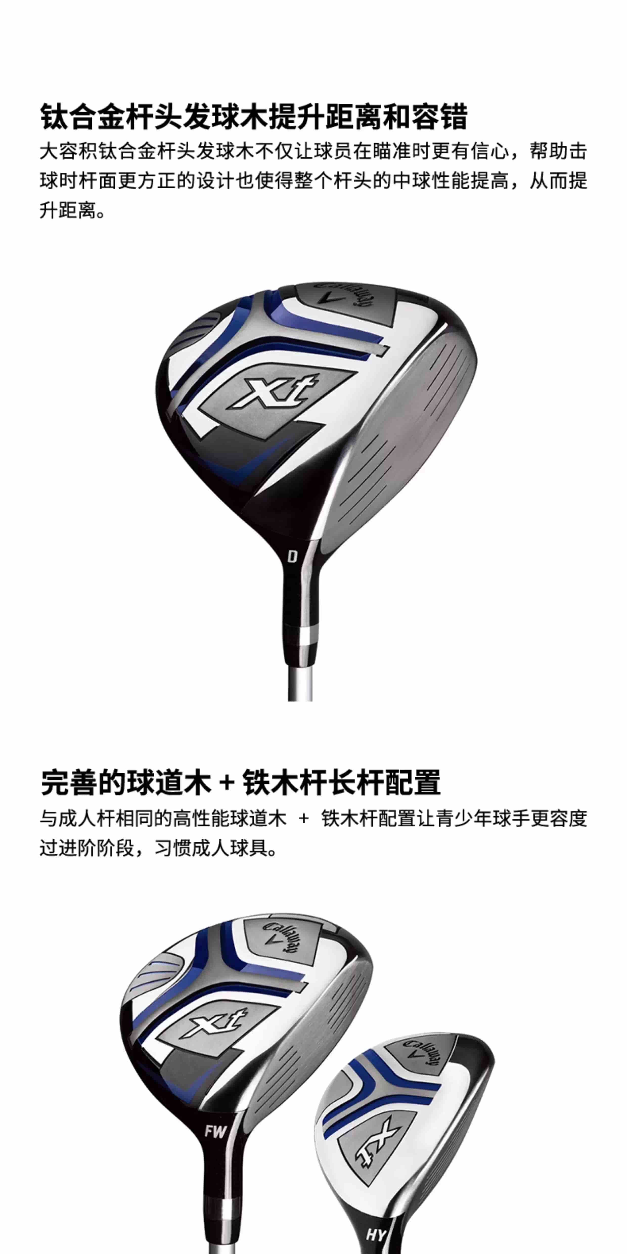 Callaway卡拉威 儿童高尔夫球杆青少年初学球杆儿童套杆(身高范围:115cm-135cm)6支装 XJ-2