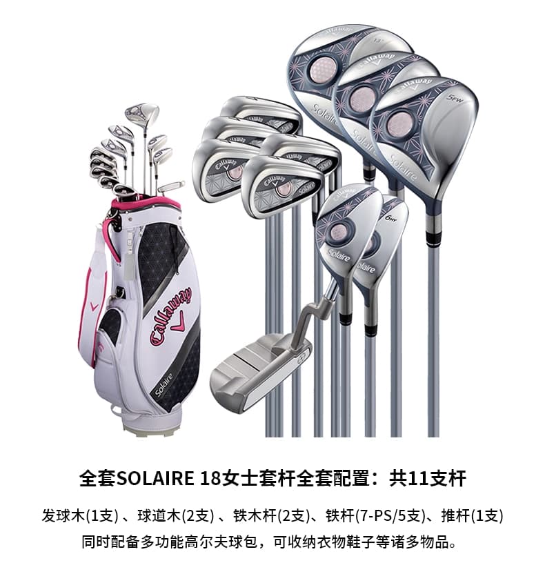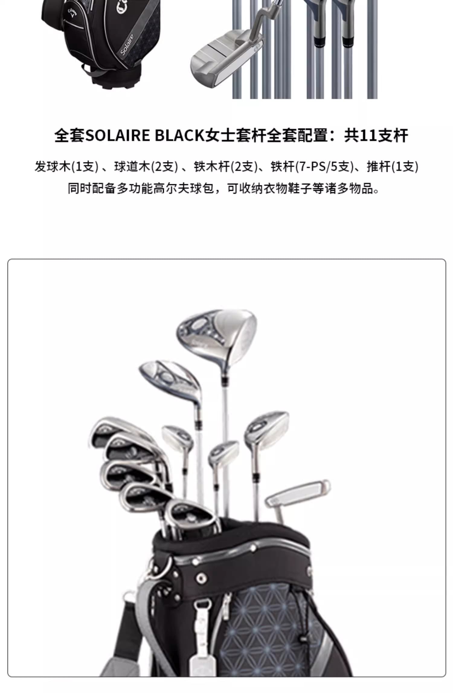 Callaway卡拉威 高尔夫球杆女士SOLAIRE套杆初级全套球杆 5木5铁1推1包 11支装 黑色