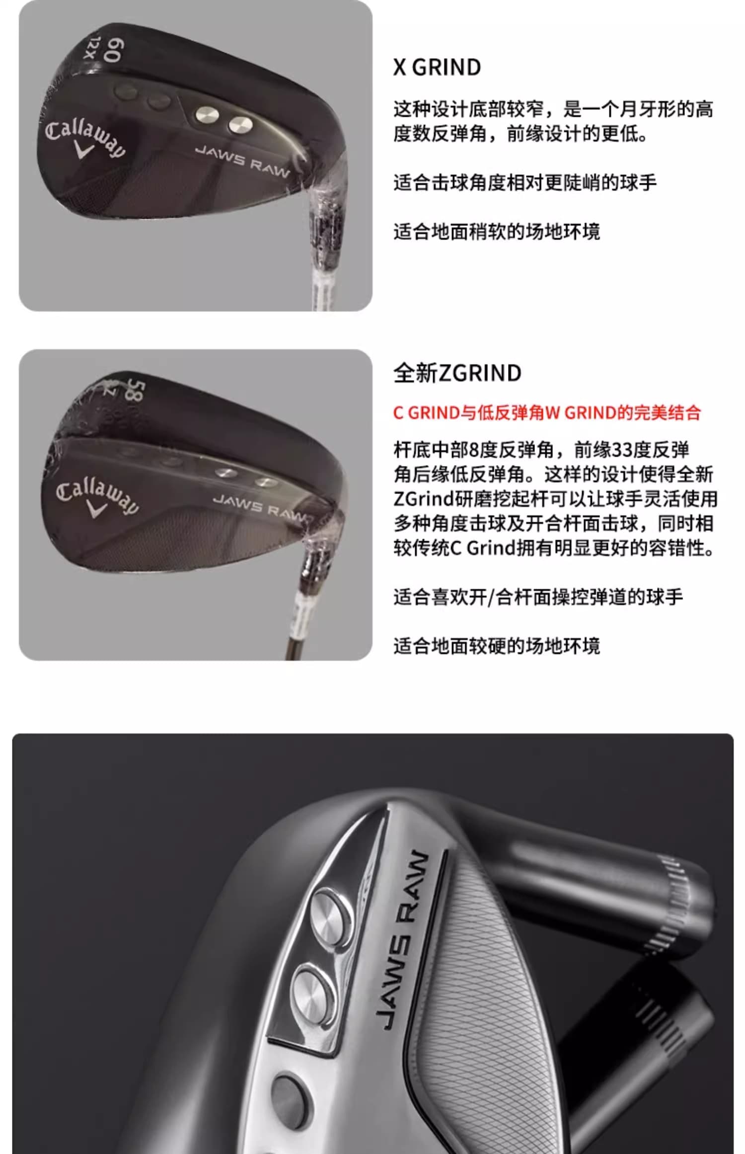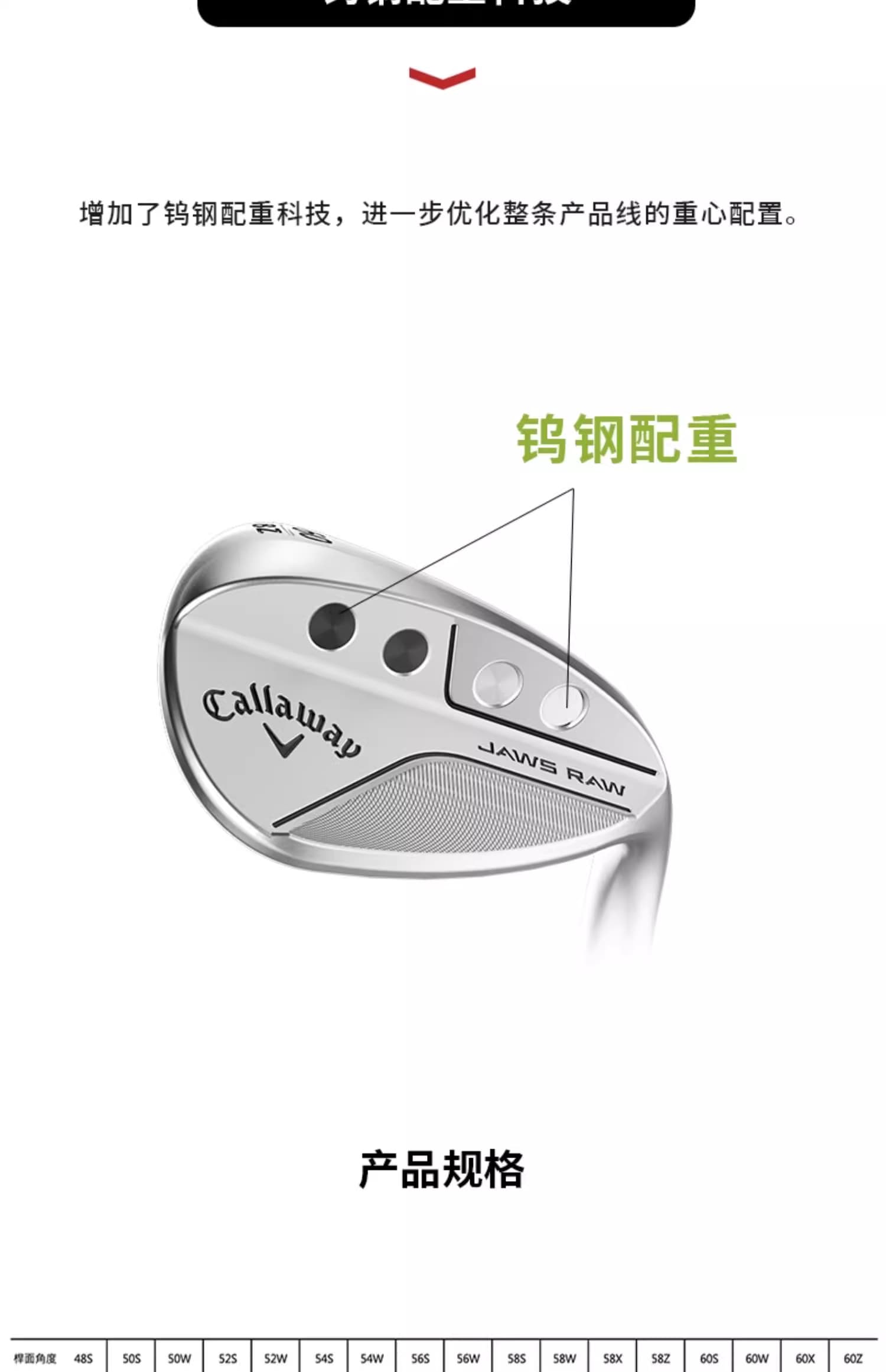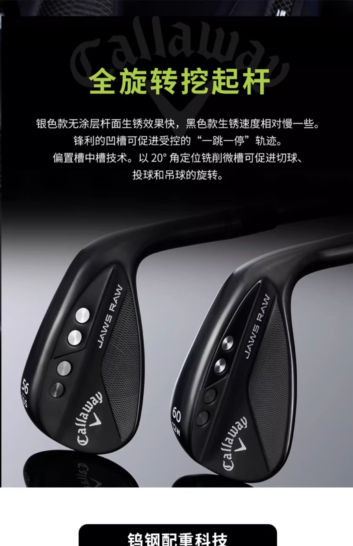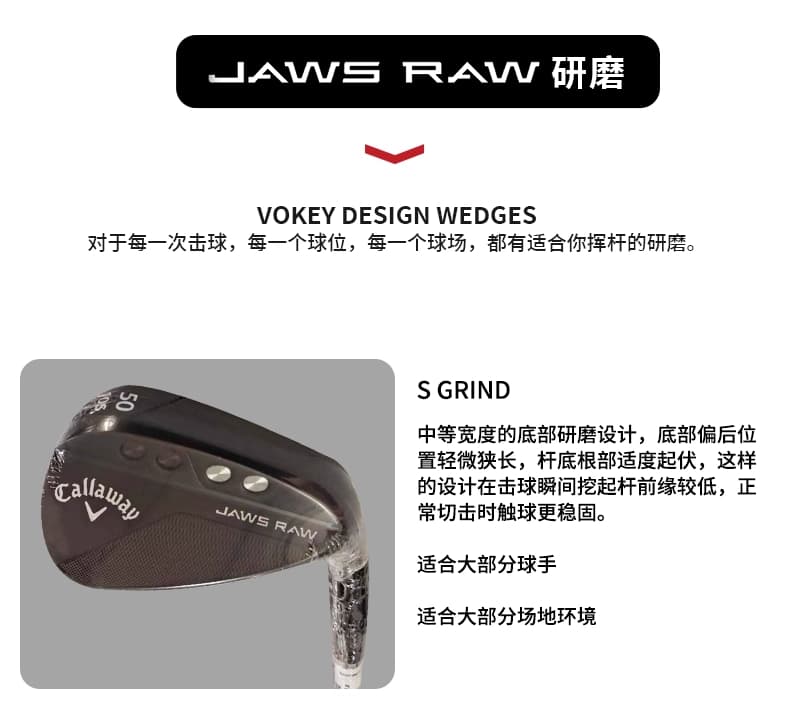 Callaway卡拉威 高尔夫球杆男全新JAWS RAW高倒旋挖起杆沙坑杆单支装 黑色/银色