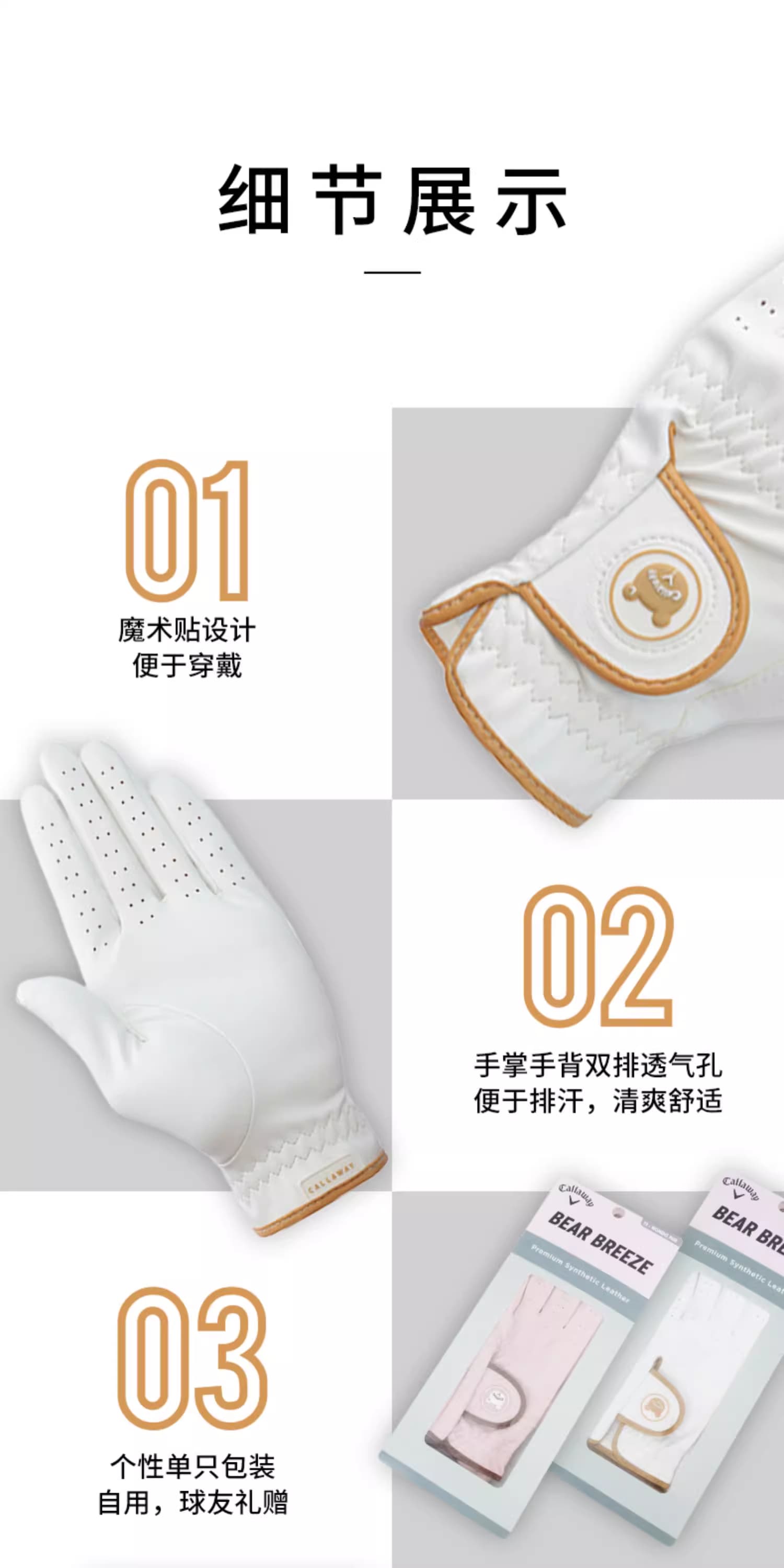 Callaway卡拉威 高尔夫手套 新款女士双手BEAR BREEZE百搭手套【一双装】 白色