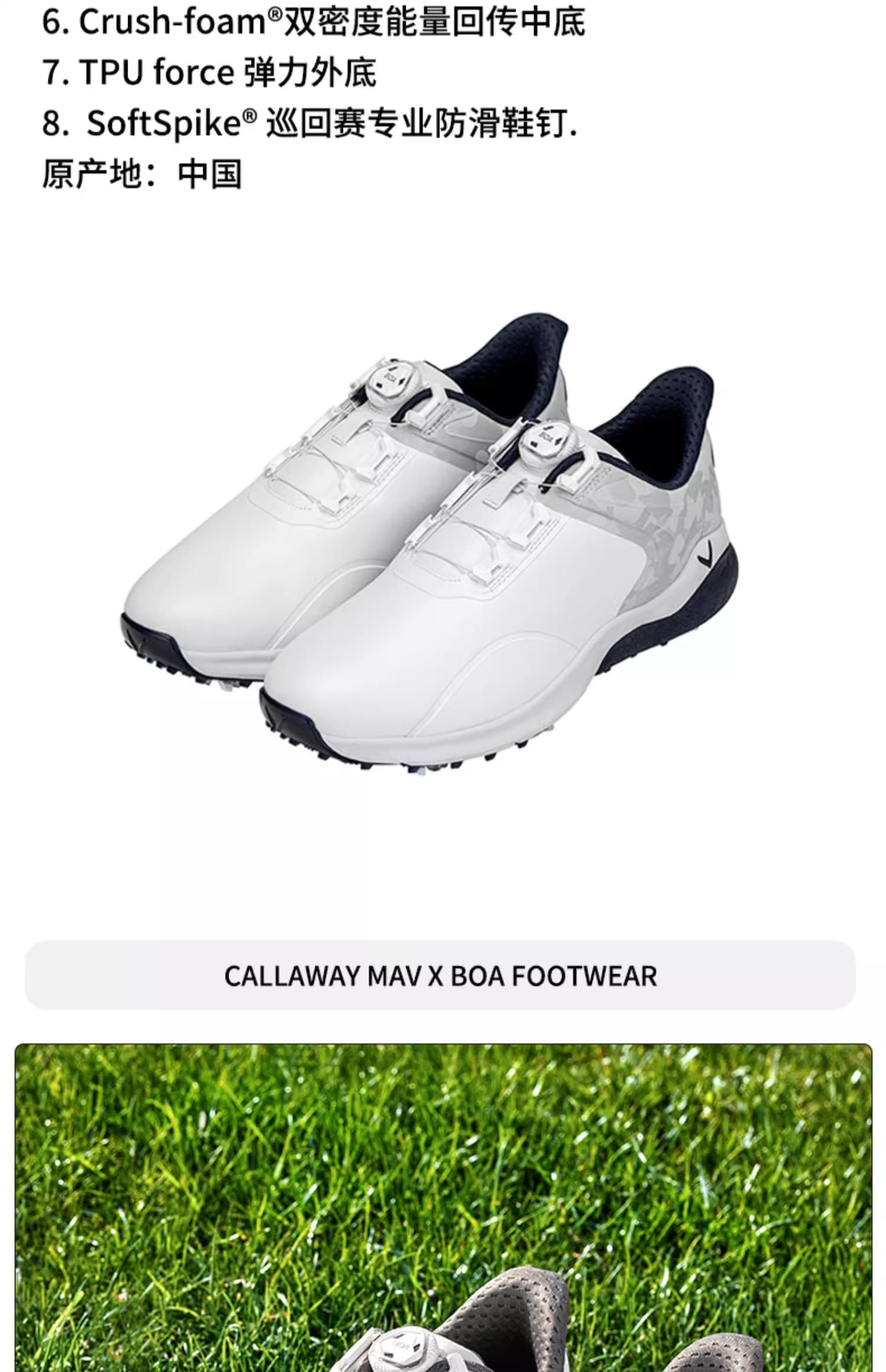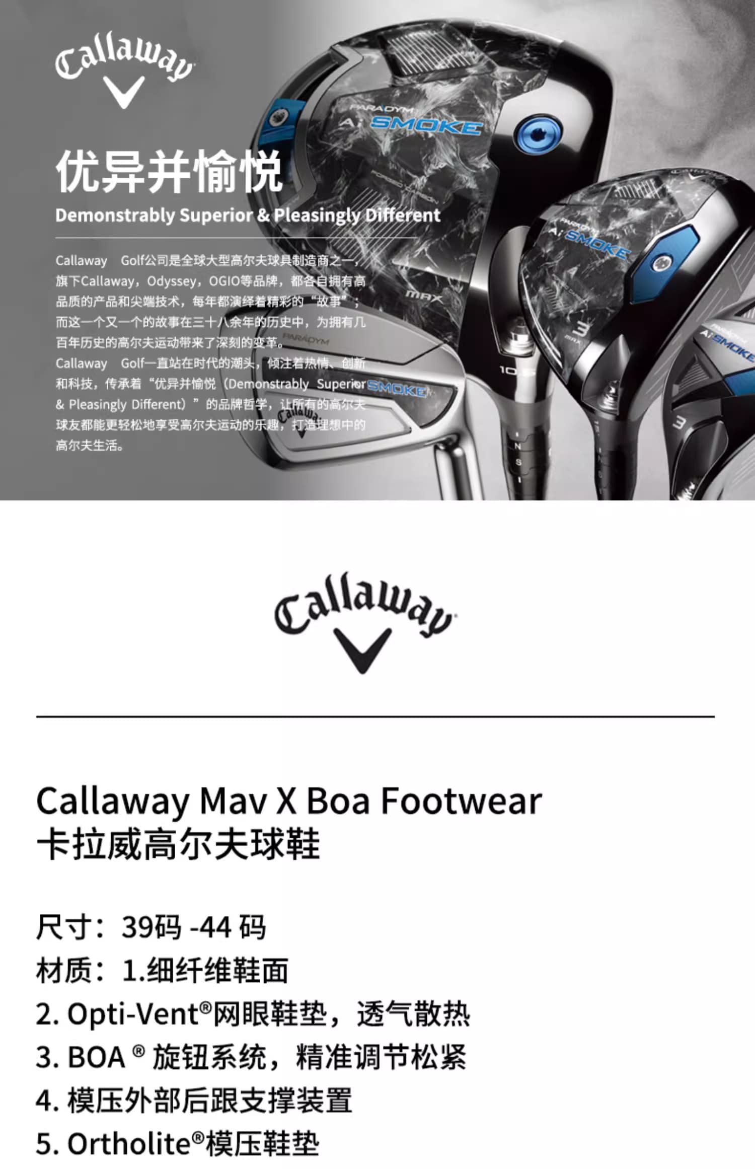 Callaway卡拉威 高尔夫球鞋 男士新款高尔夫男鞋专业高尔夫球鞋防滑钉鞋 白色