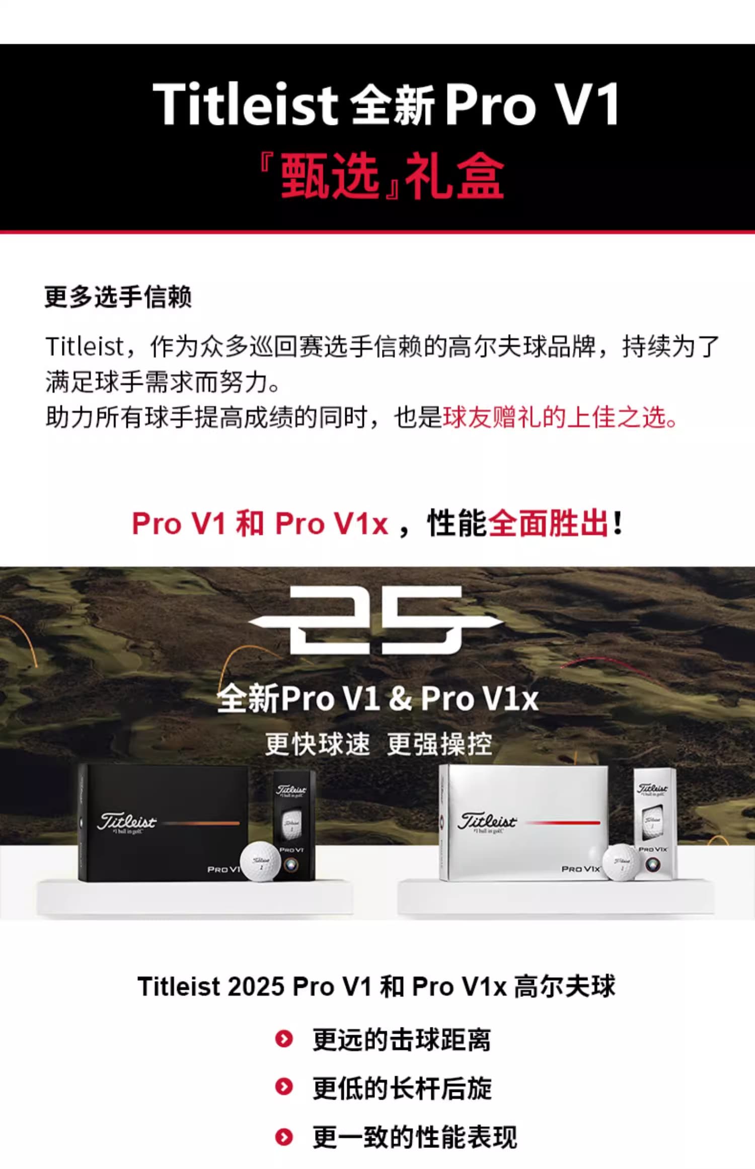 Titleist泰特利斯 高尔夫球 25新款Pro V1系列限量礼盒球友赠礼自用高尔夫球礼盒 甄选礼盒