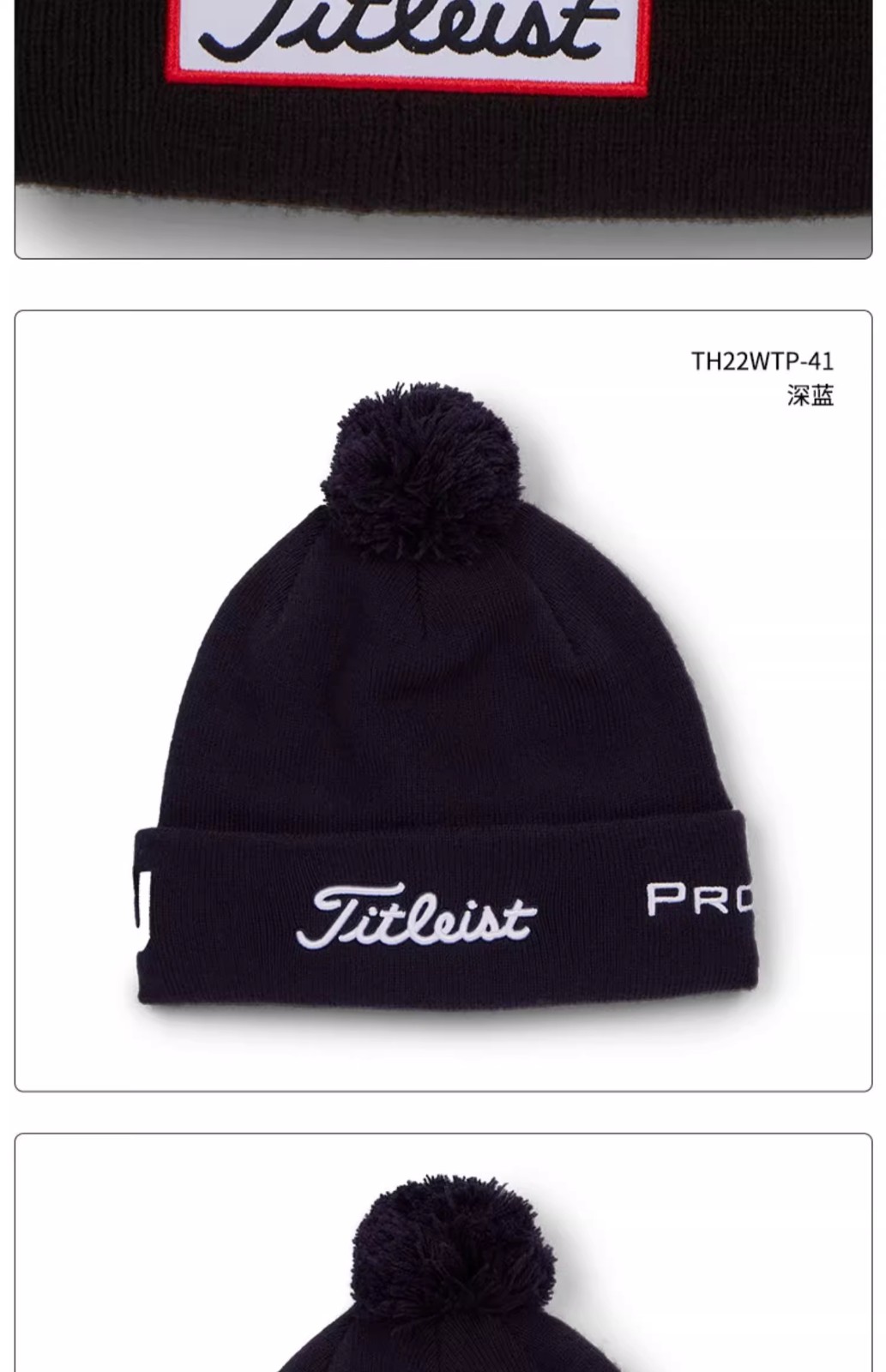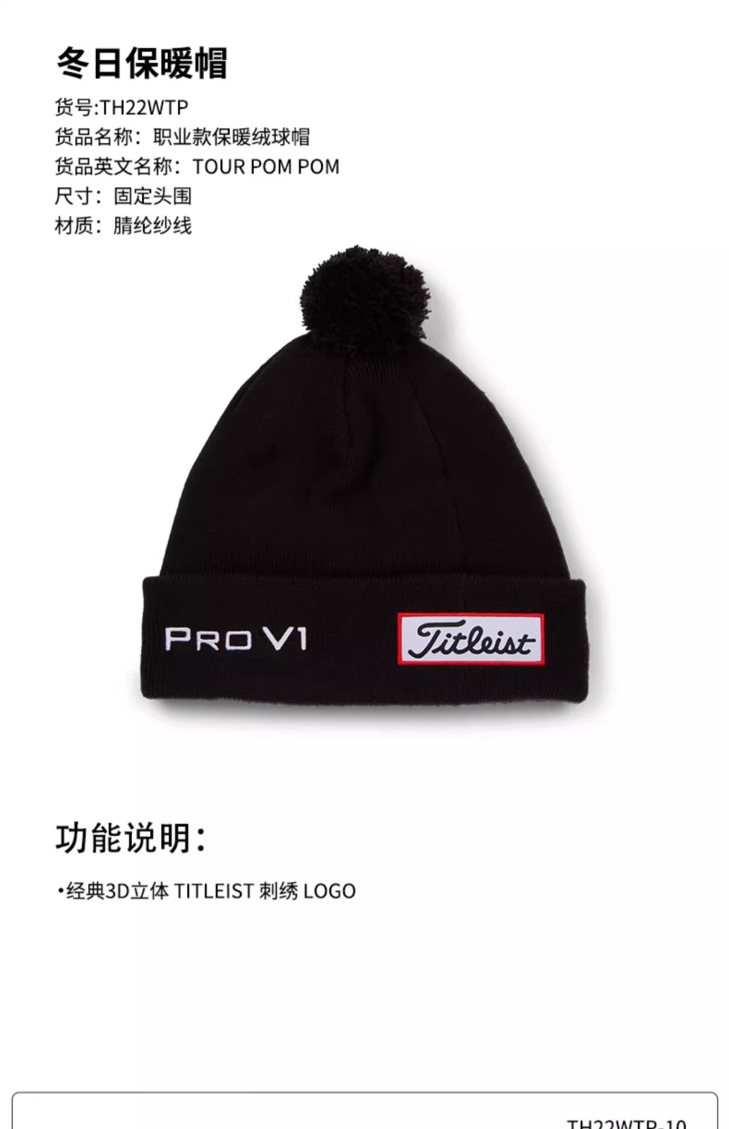 Titleist泰特利斯 高尔夫球帽 冬季保暖针织帽职业款绒球帽 多色可选
