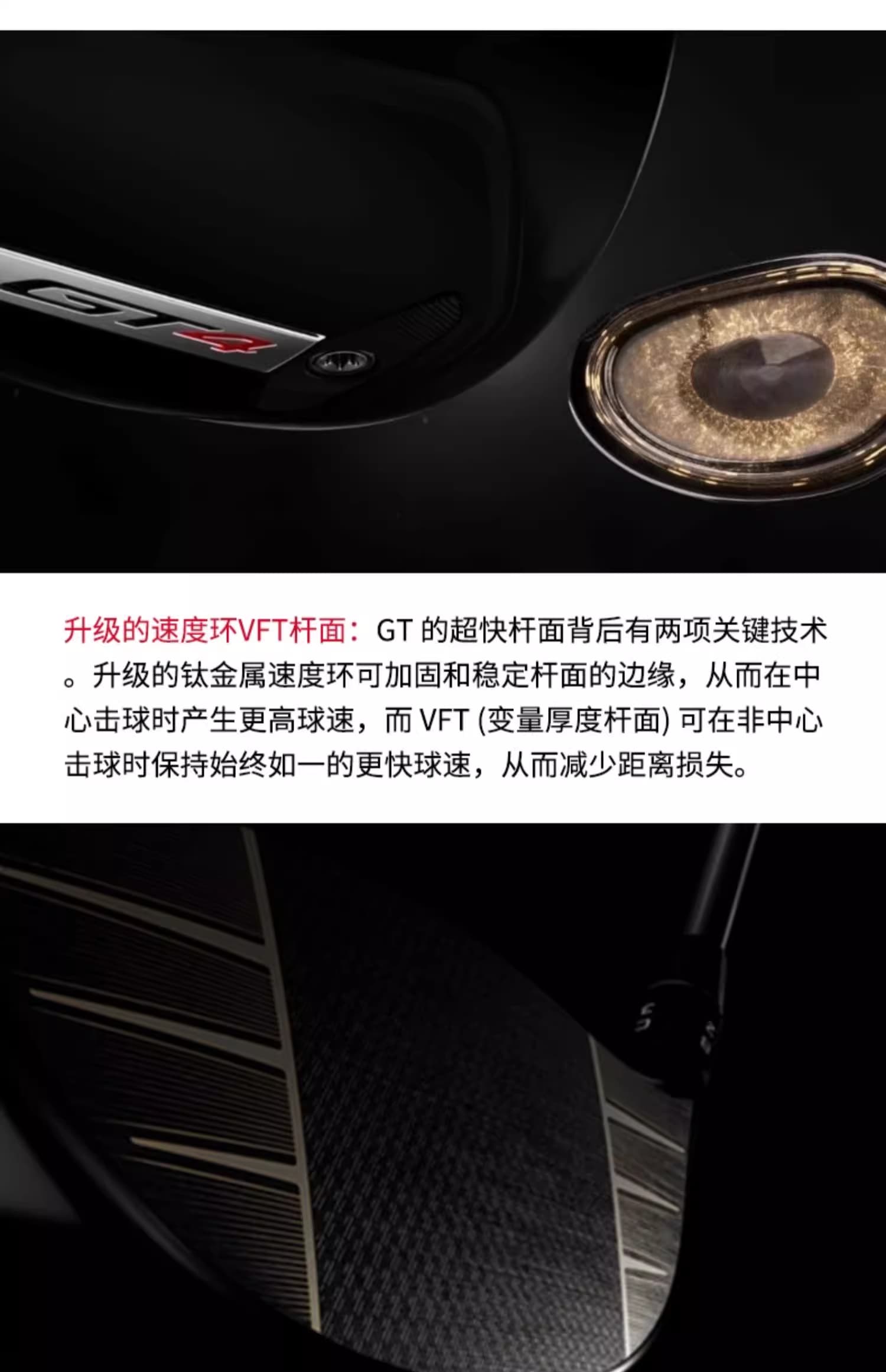 将通过 GT2升级的速度环VFT(变量厚度杆面)在整个杆面上找到更快的球速,