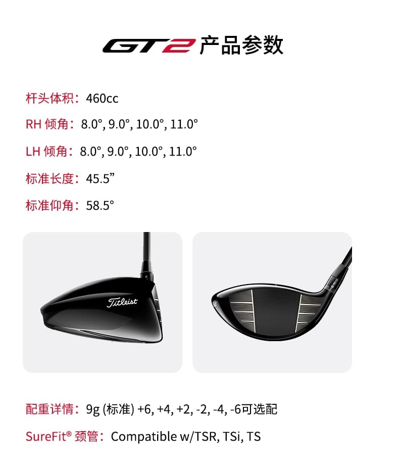 Titleist泰特利斯 高尔夫球杆 GT2发球木杆高容错高球速一号木