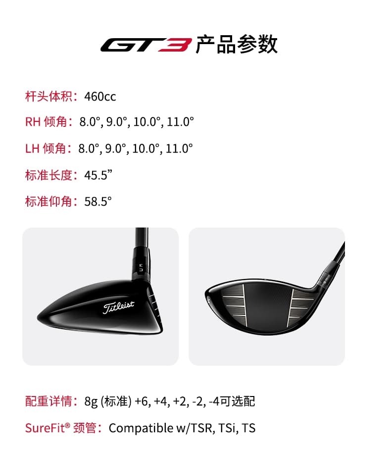 Titleist泰特利斯 高尔夫球杆 GT3发球木杆更稳更快球速一号木