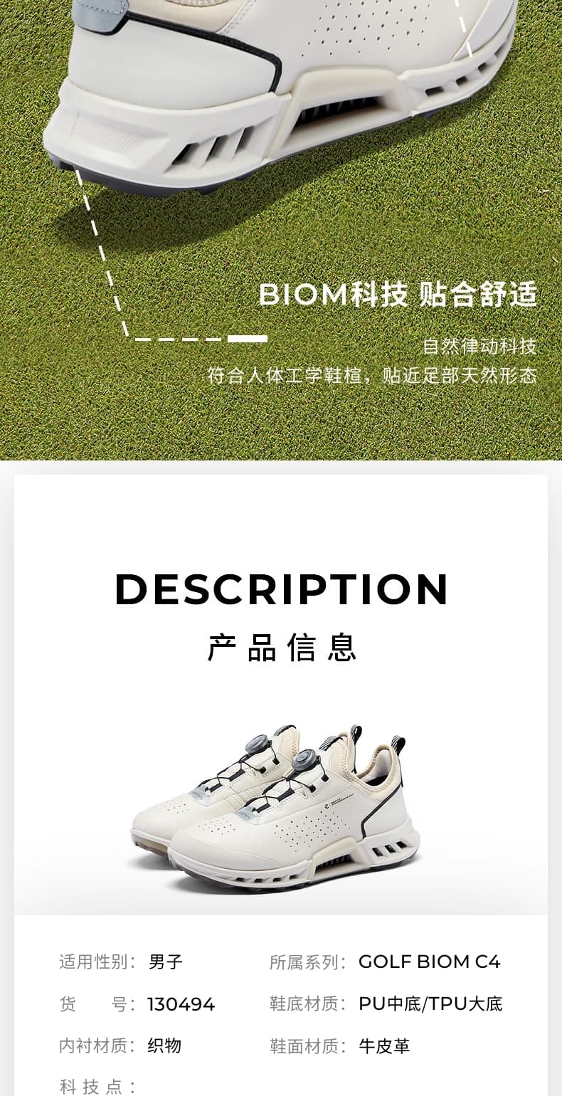 ECCO爱步 高尔夫鞋 男款爱步透气防滑减震高尔夫健步运动鞋 BIOM C4 130494