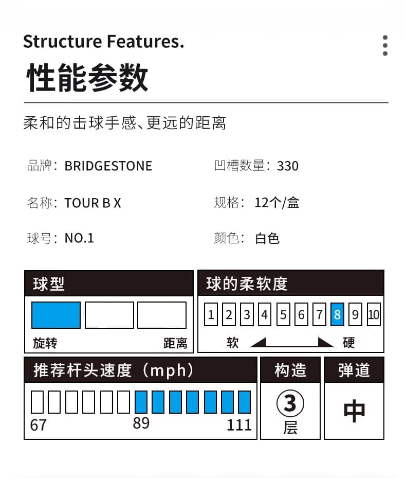 Bridgestone普利司通 高尔夫球 TOUR B X 老虎签名限量版日本制造三层球 B4WXTW 12粒装
