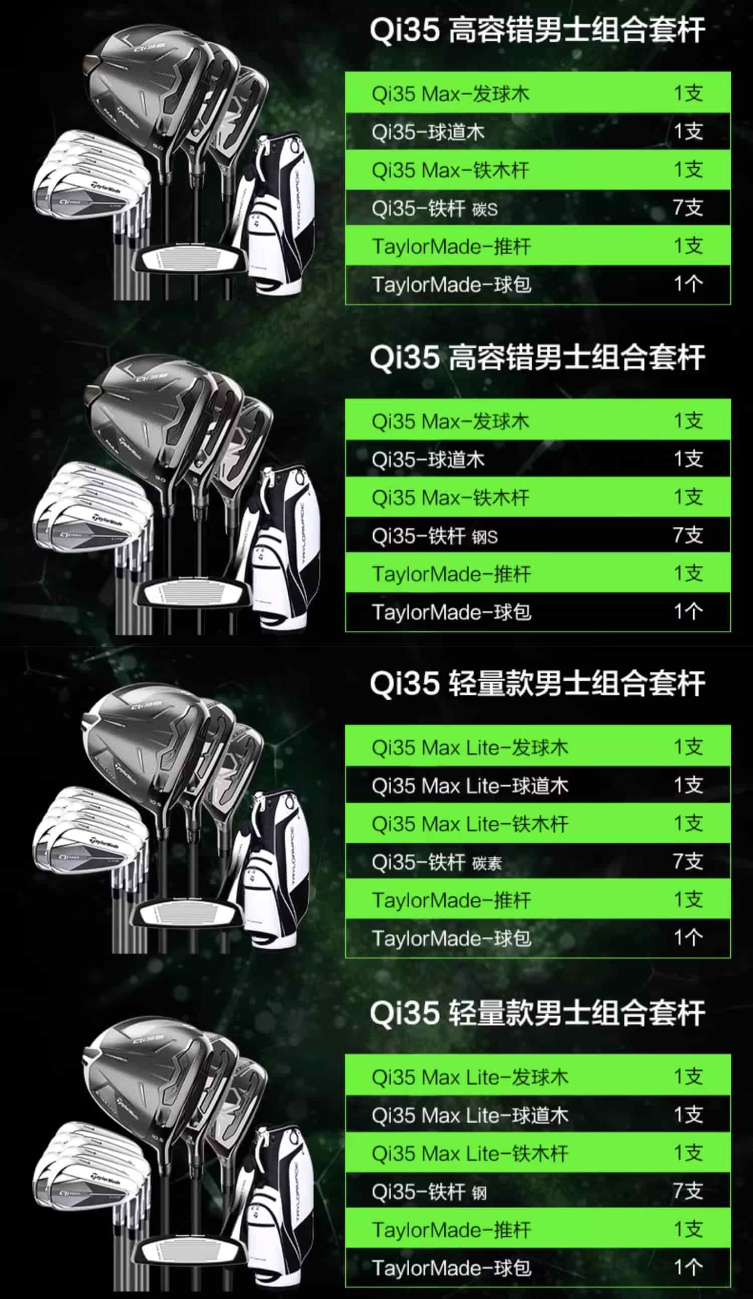 TaylorMade泰勒梅 高尔夫球杆 男士新款Qi35创世高容错全套套杆