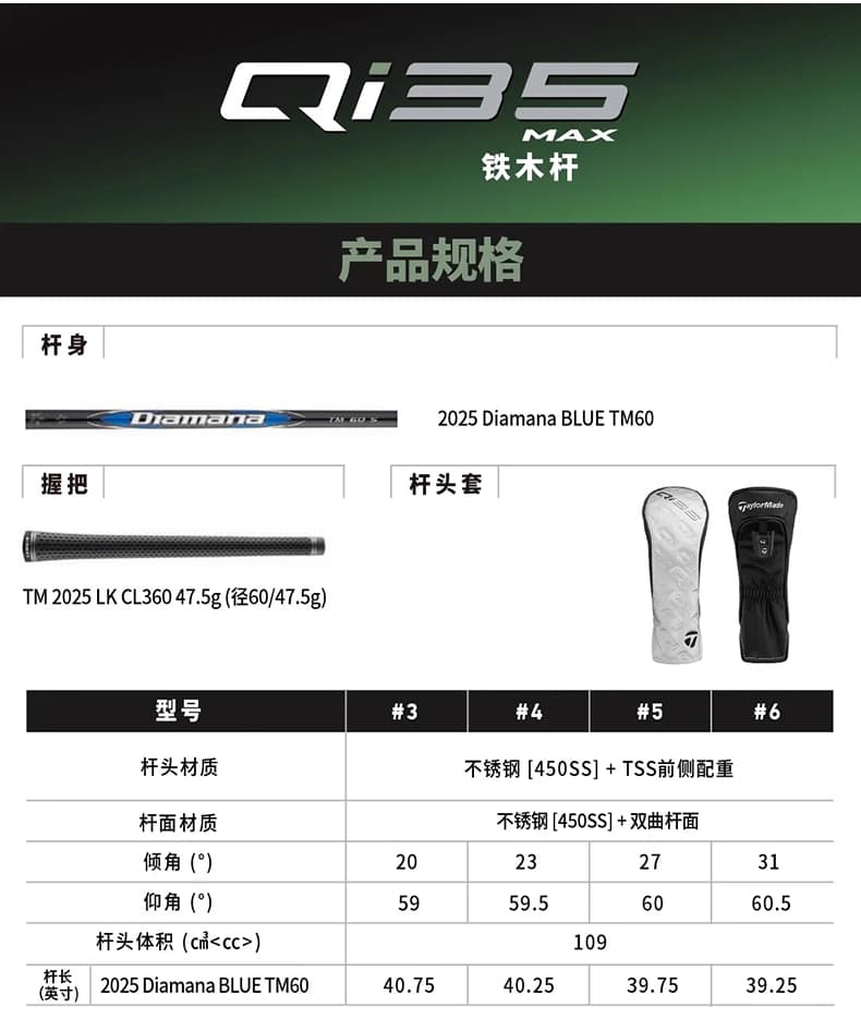 TaylorMade泰勒梅 高尔夫球杆 男士新款Qi35创世高容错全套套杆 解锁球速新纪元