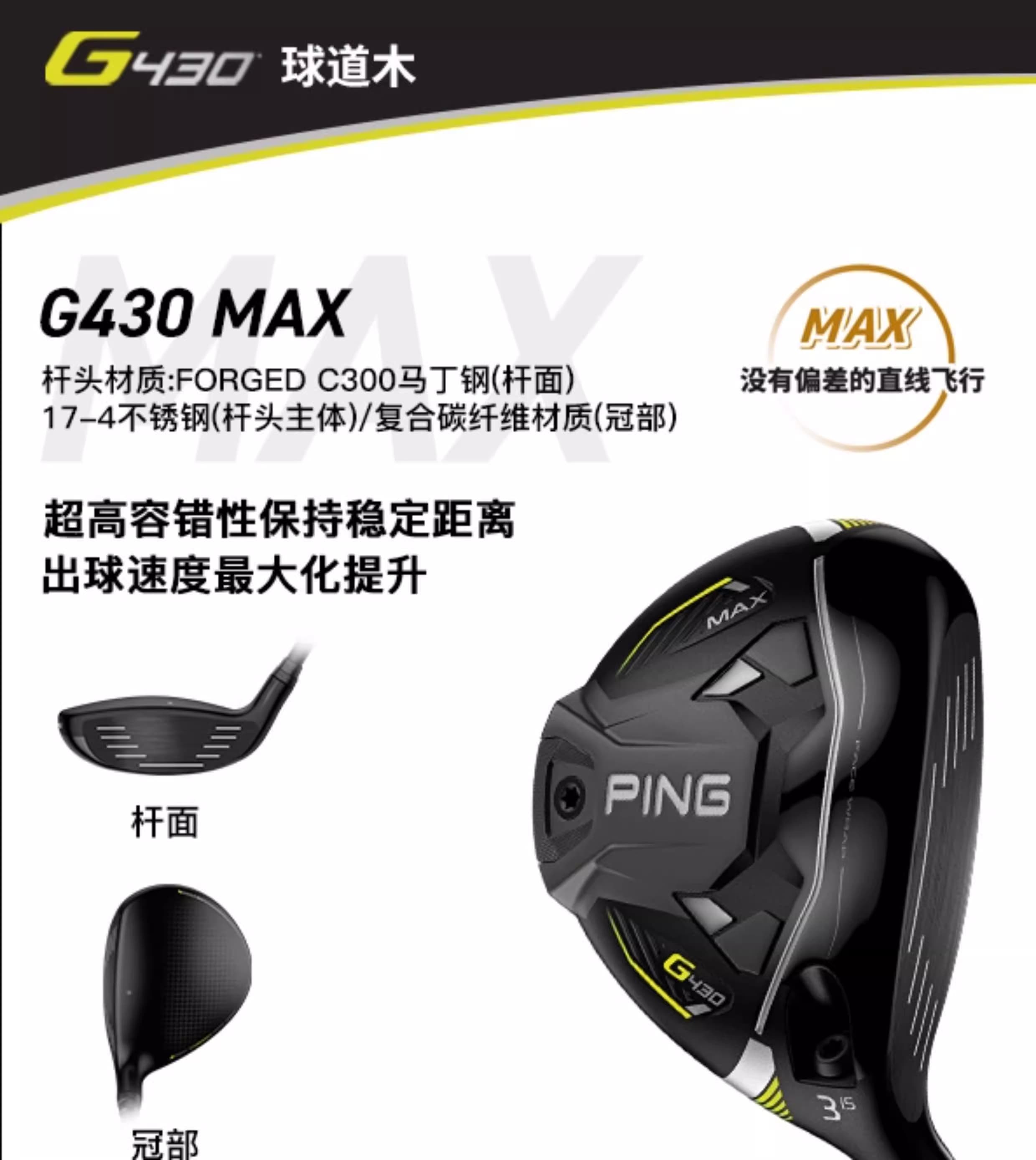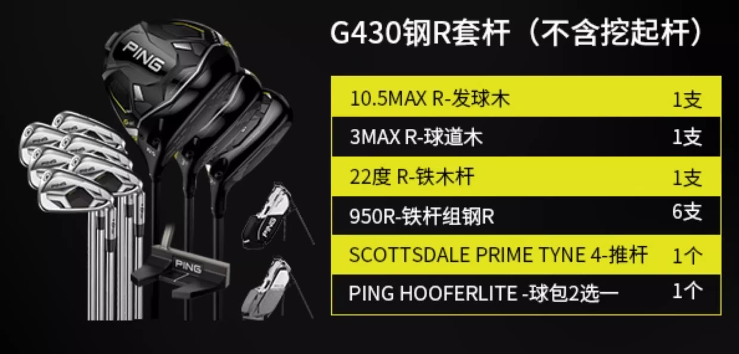 PING 高尔夫球杆 G430套杆高容错男士golf组合套杆 钢R套杆(3木6铁1推1包)