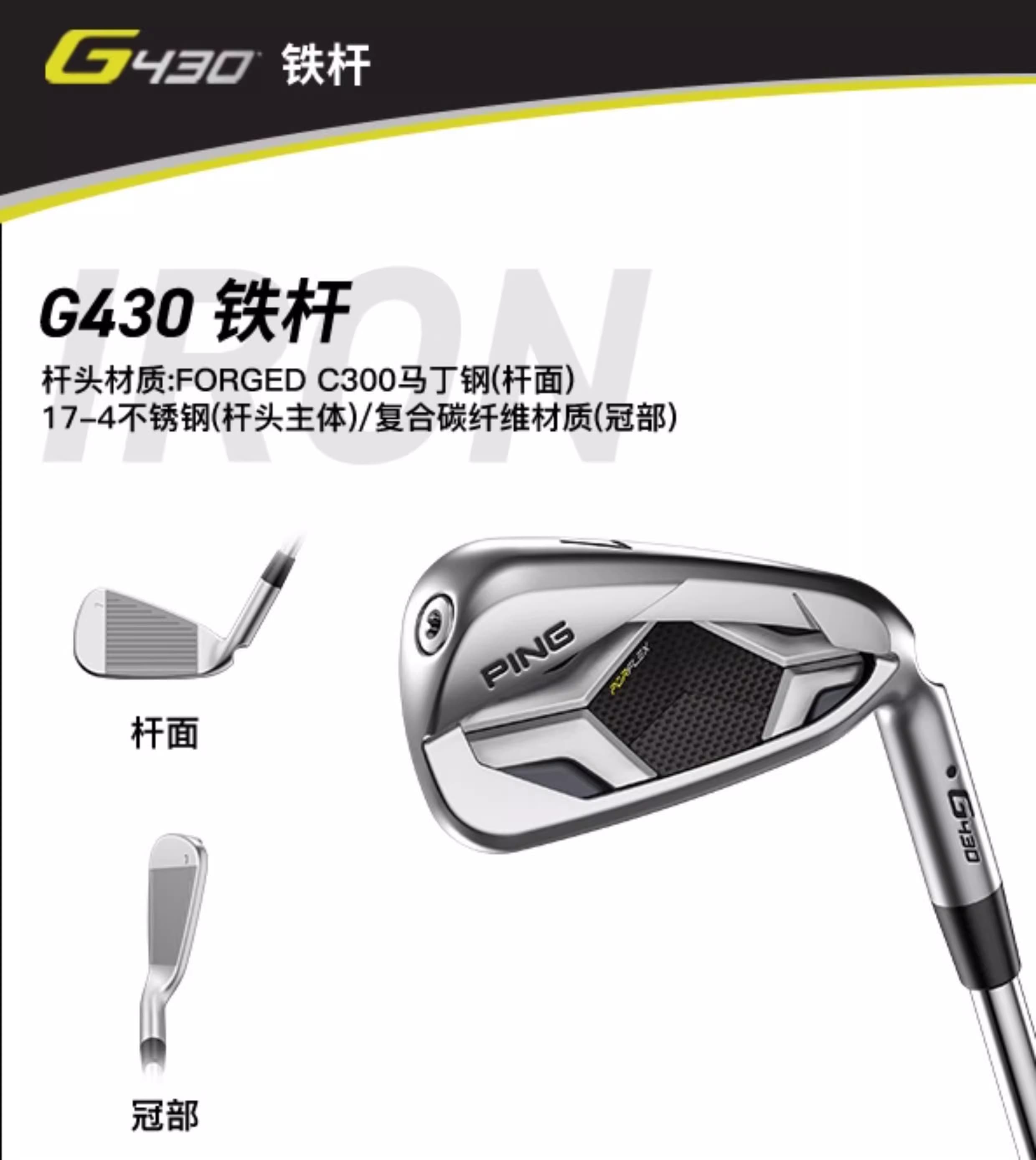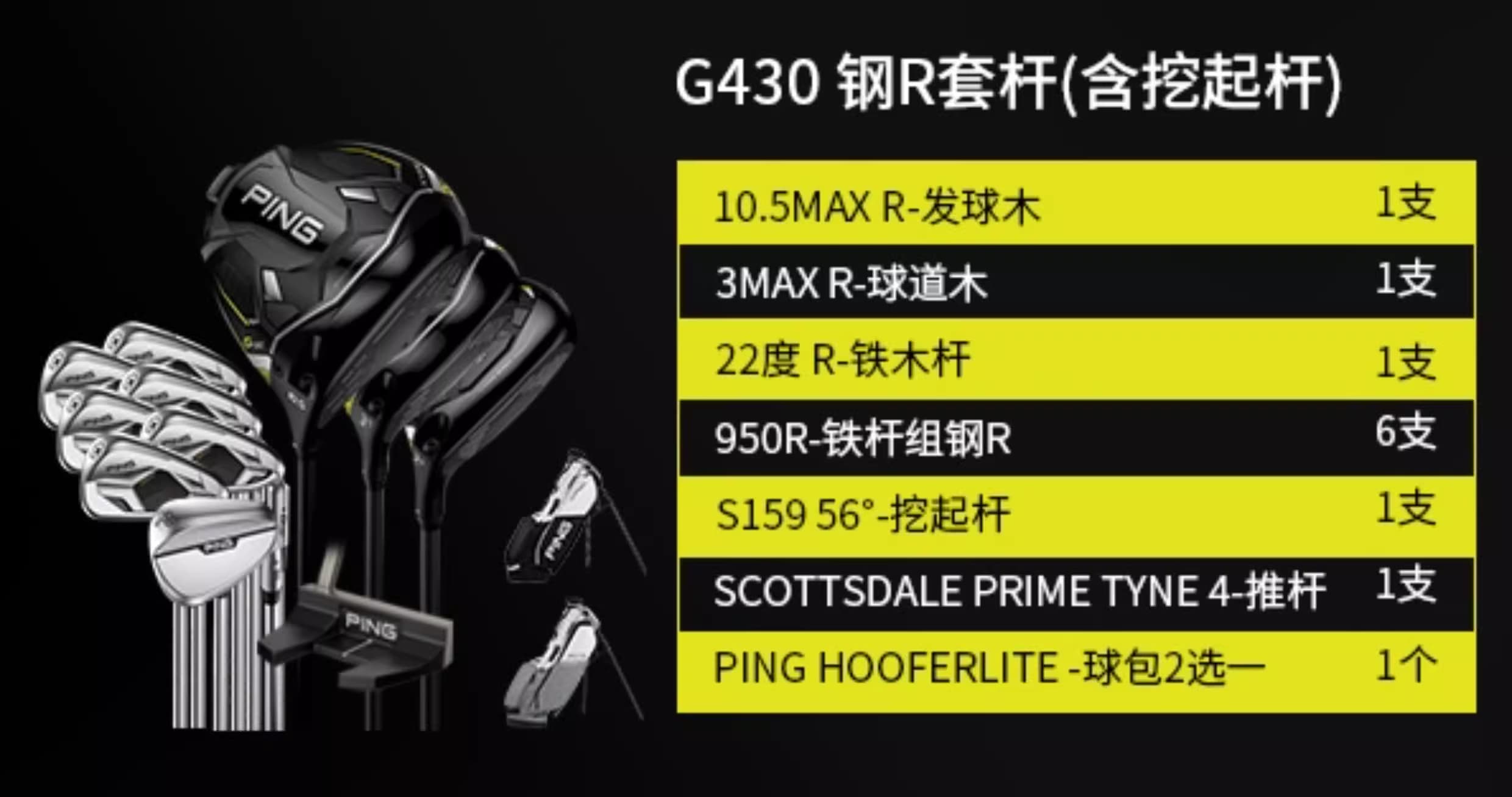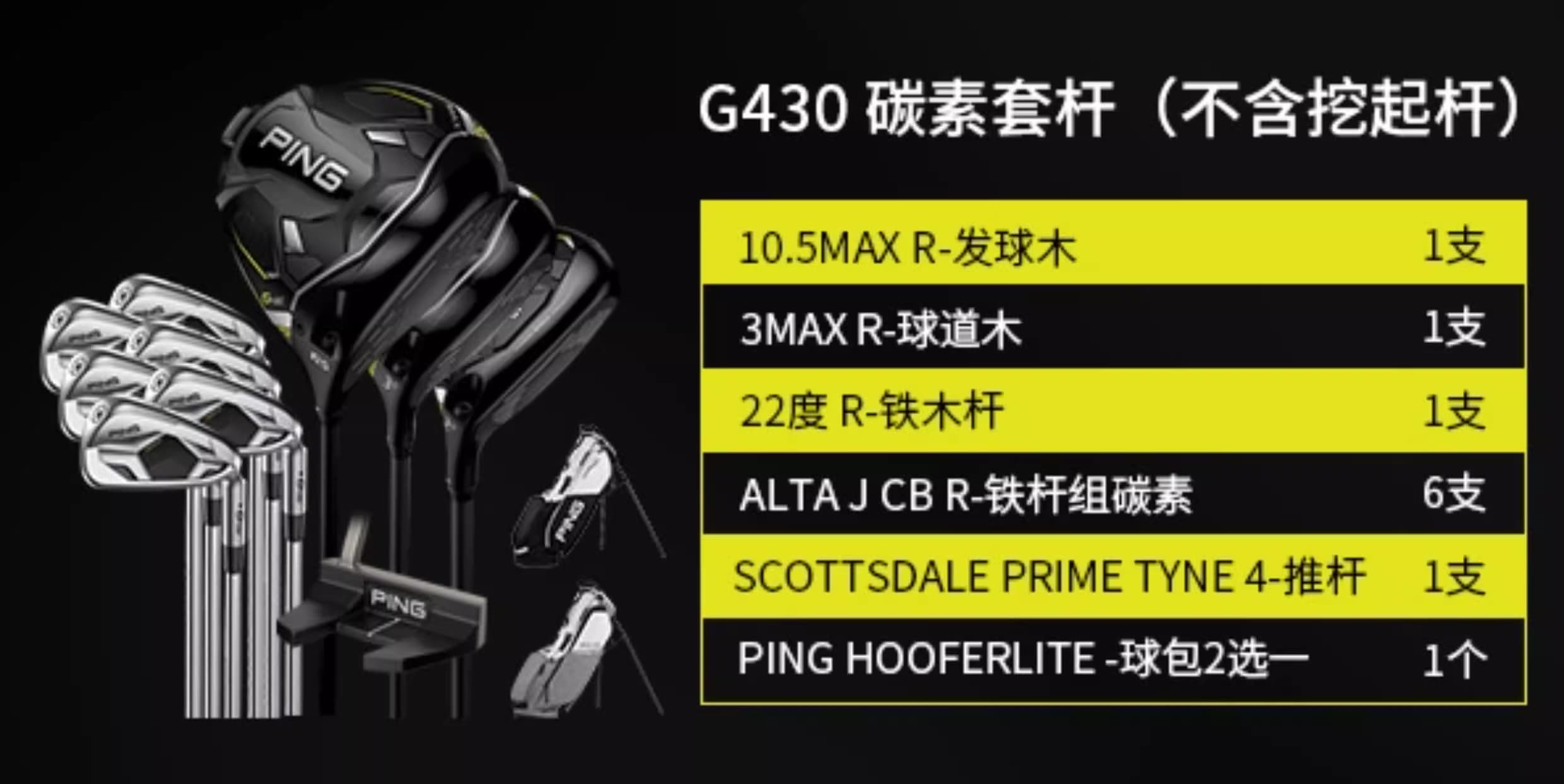 PING 高尔夫球杆 G430套杆高容错男士golf组合套杆 钢R套杆(3木6铁1挖1推1包)【含挖起杆】