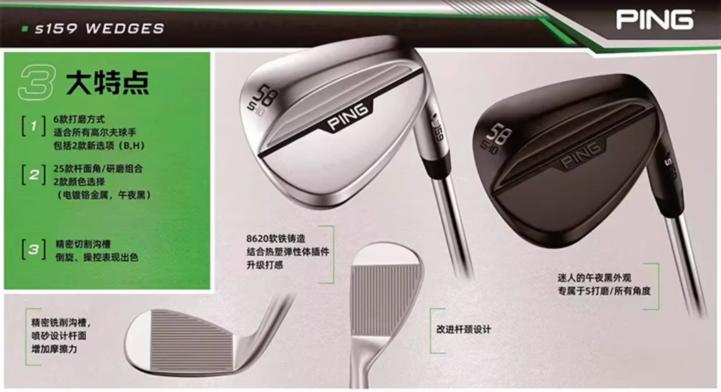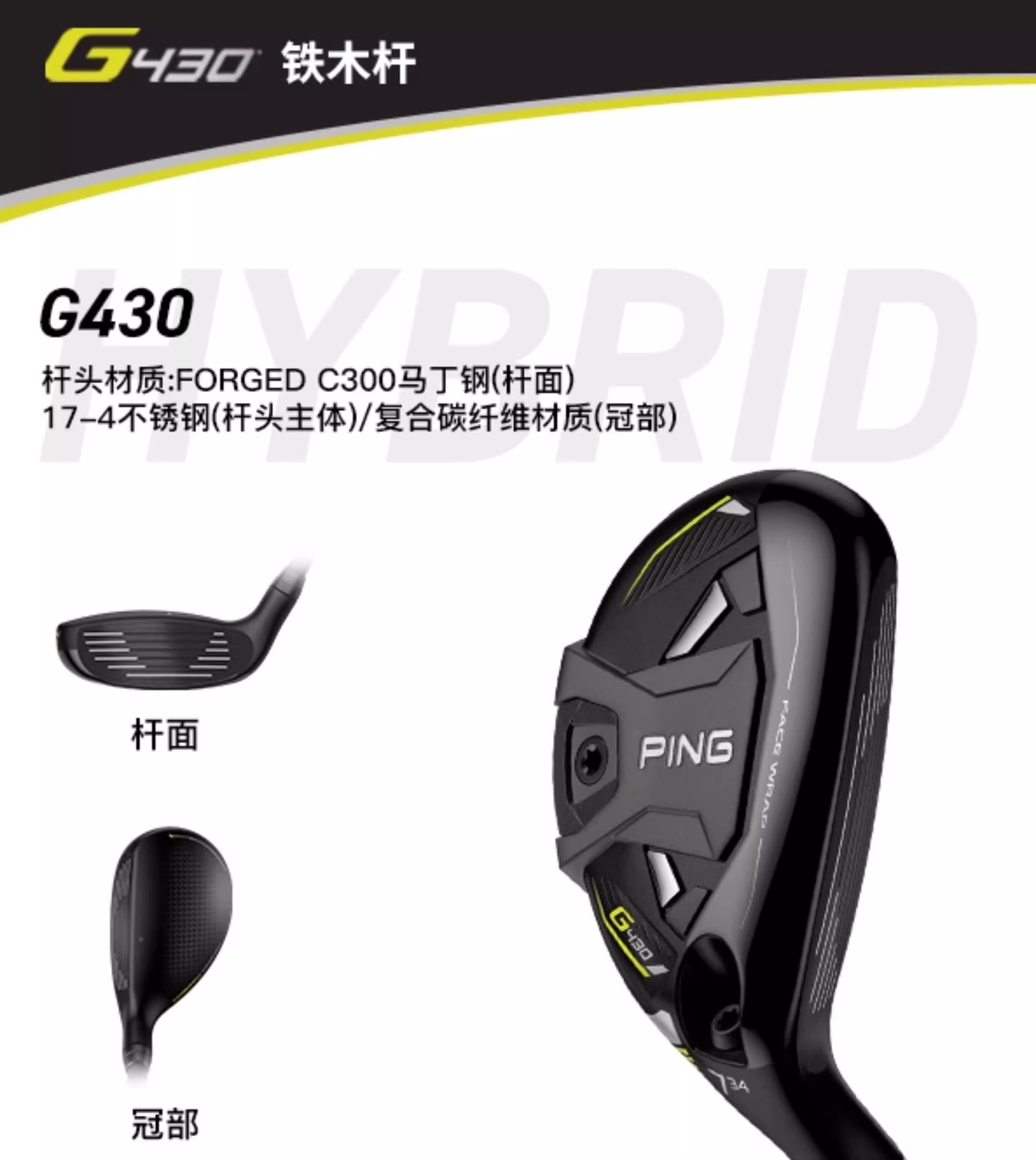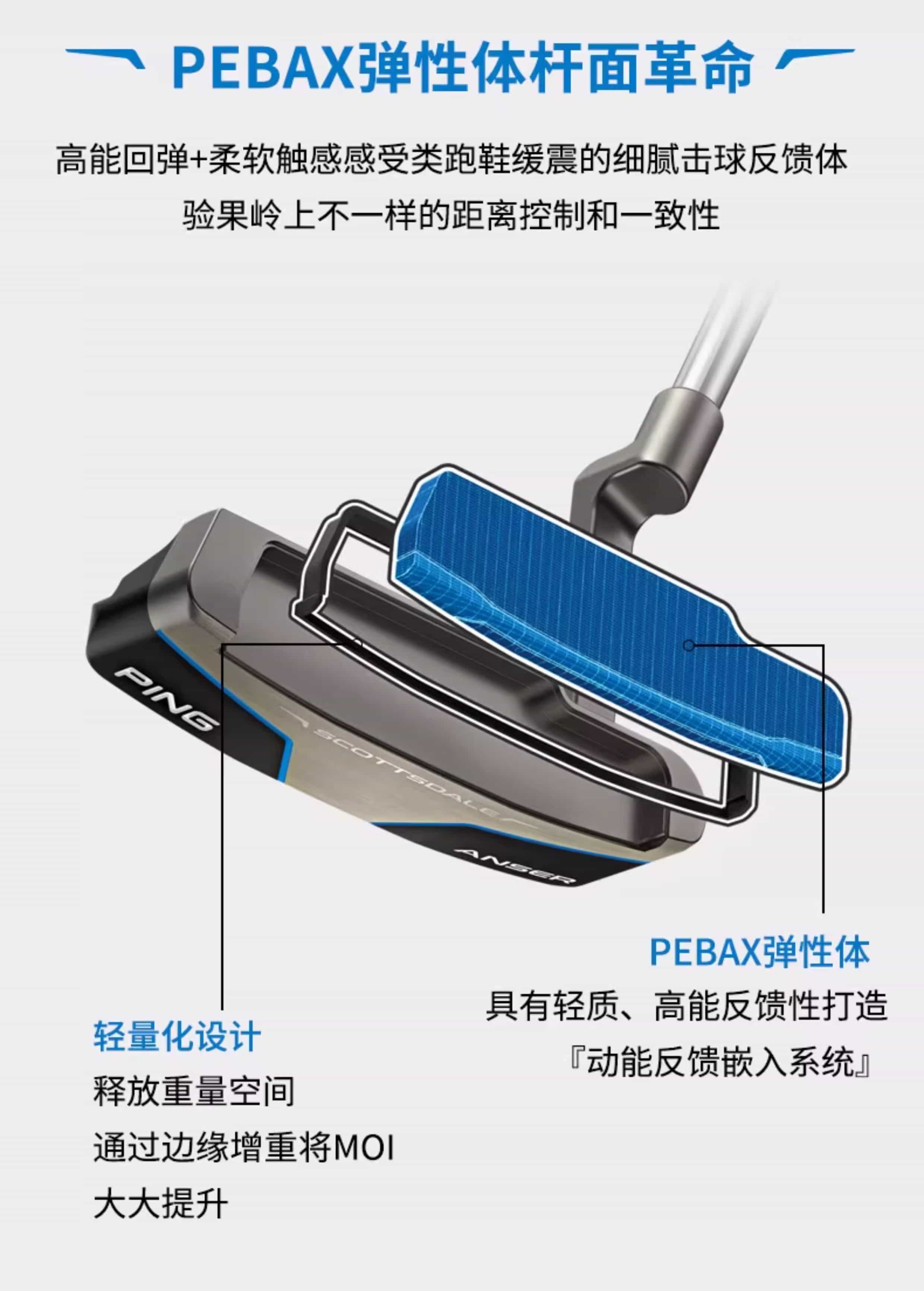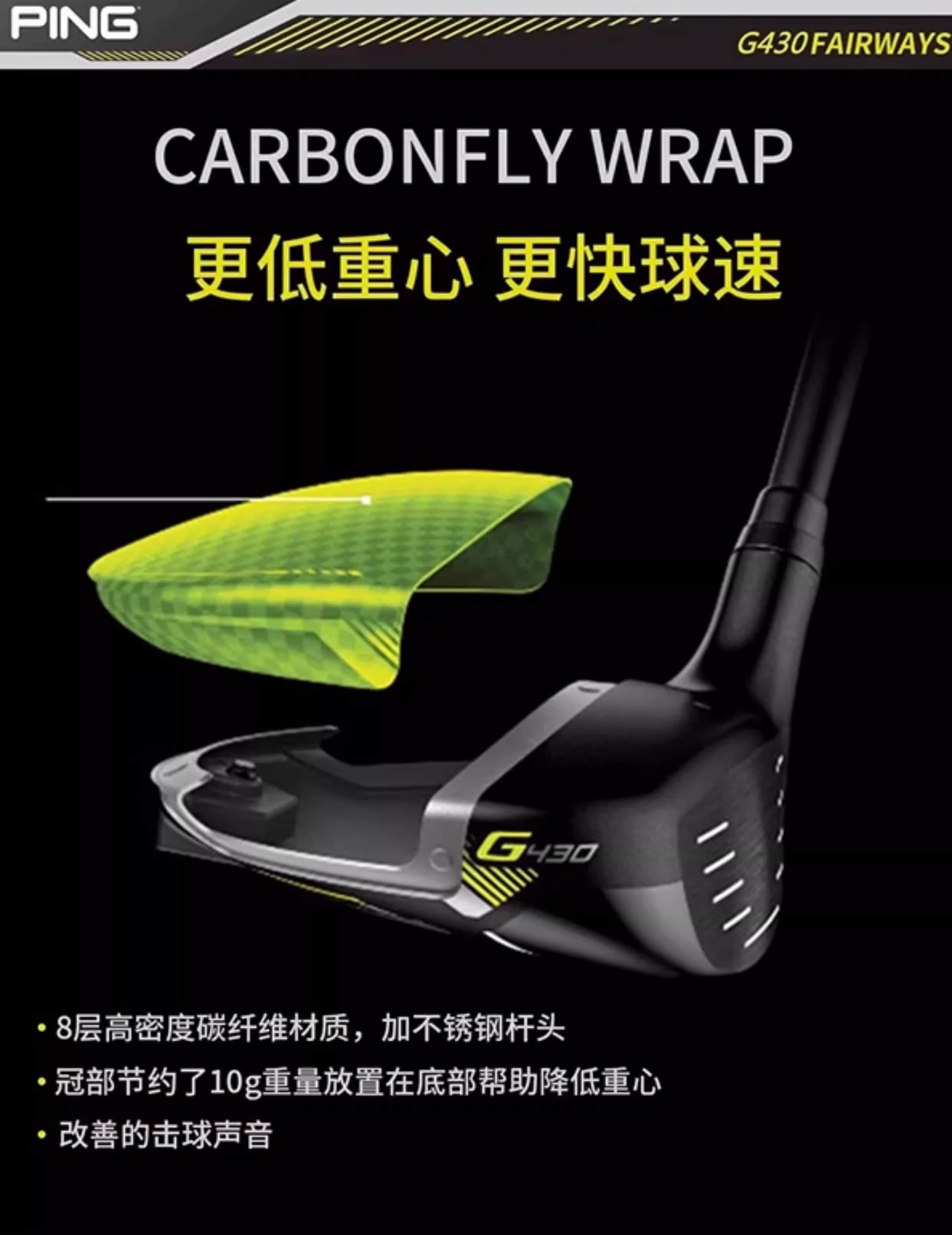 包裹冠部及底部的杆面,提升了反弹性能