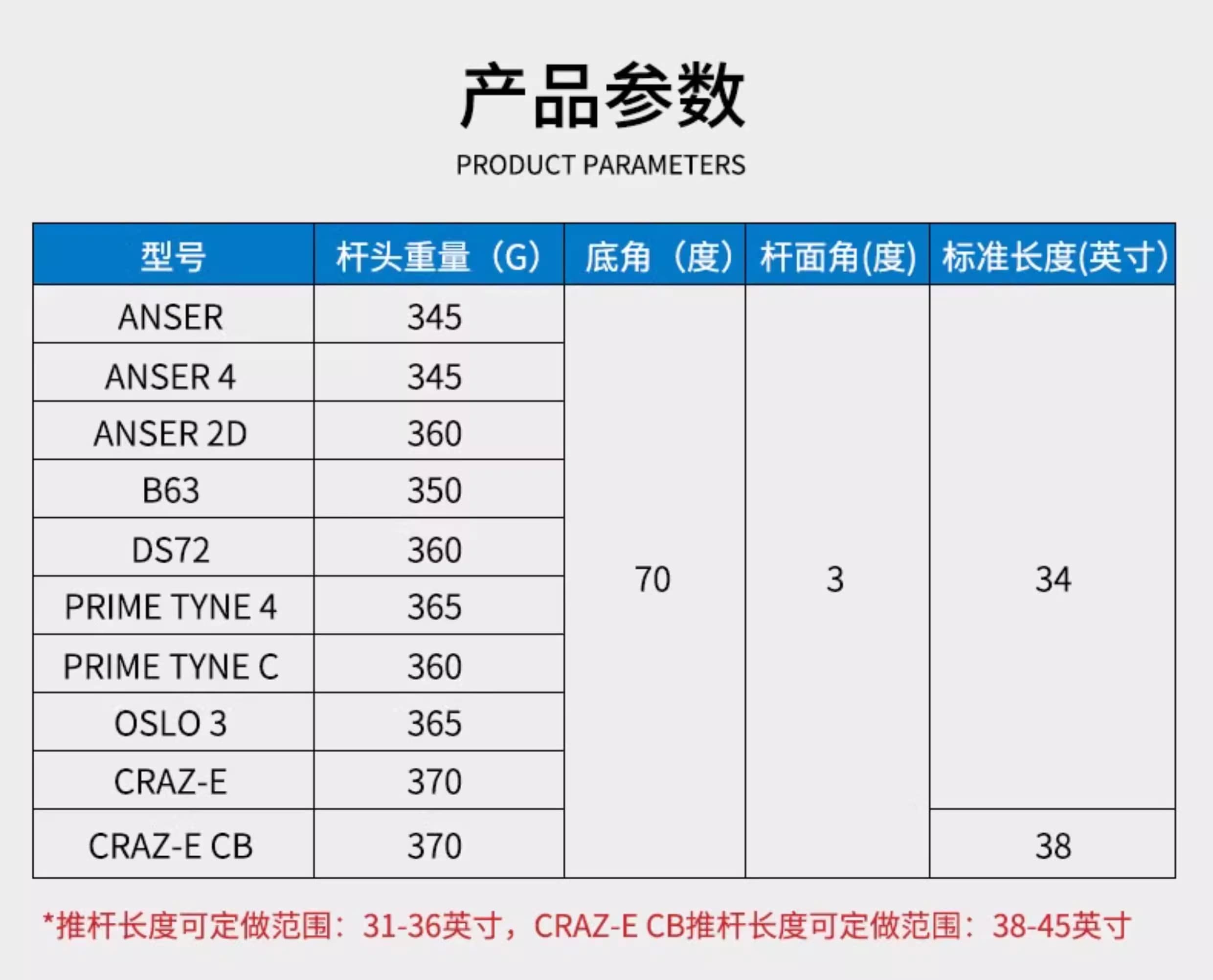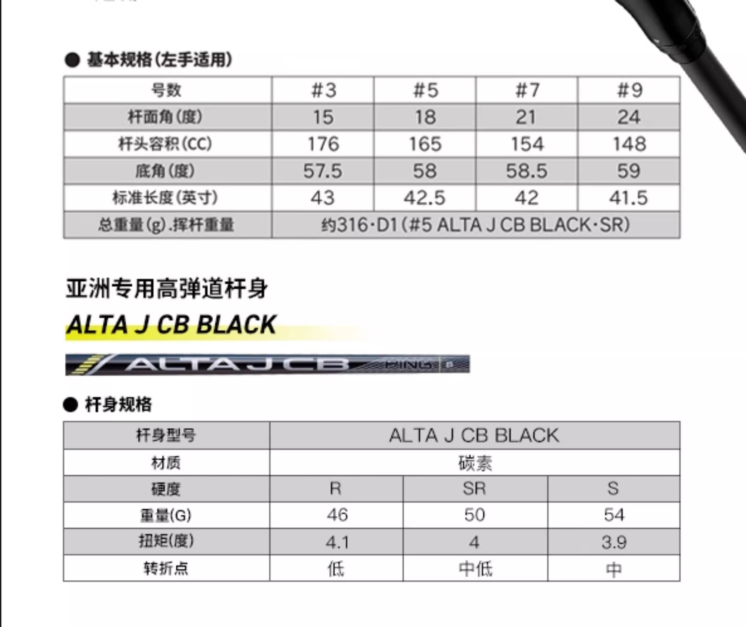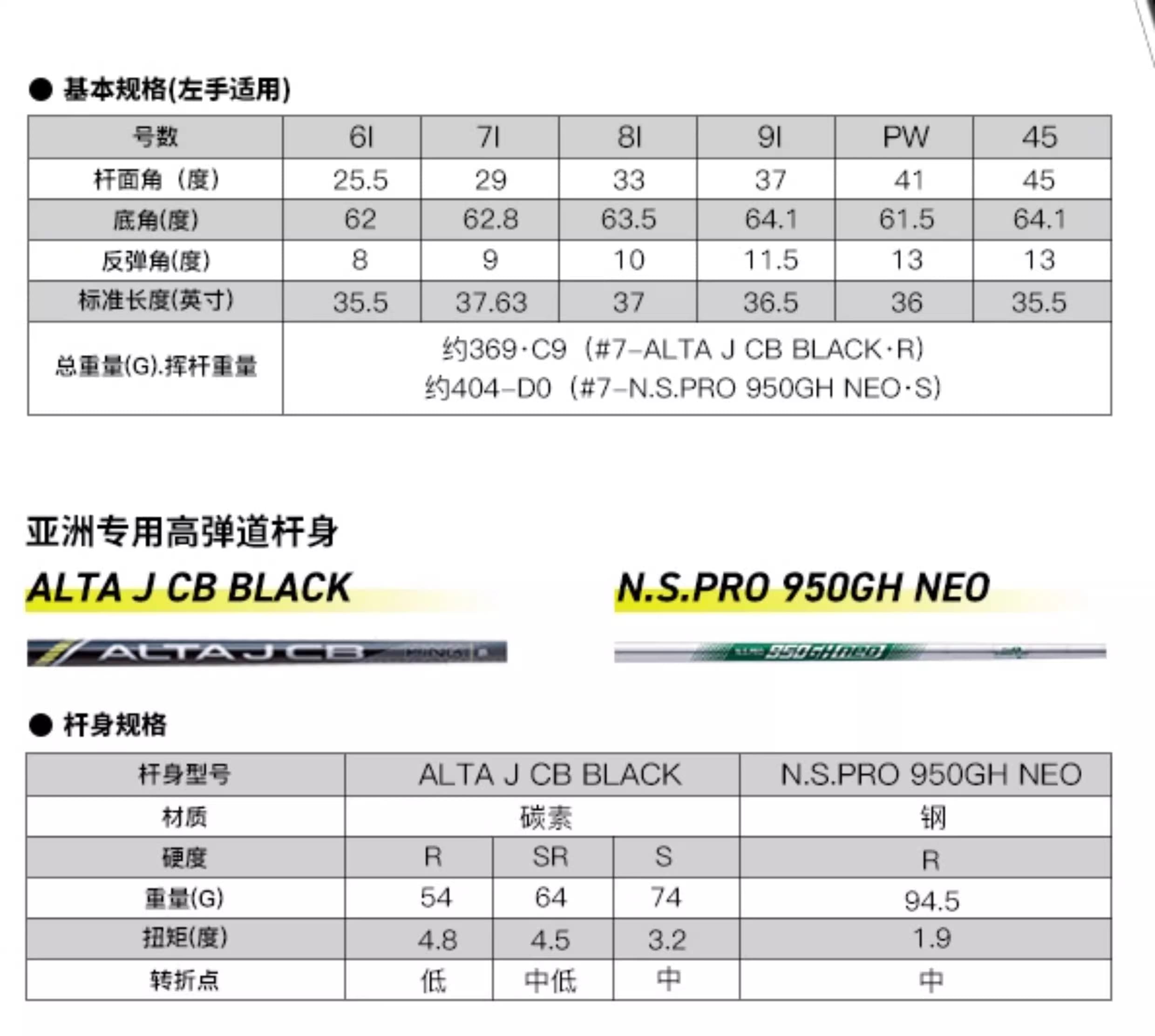 8层高密度碳纤维材质,加不锈钢杆头