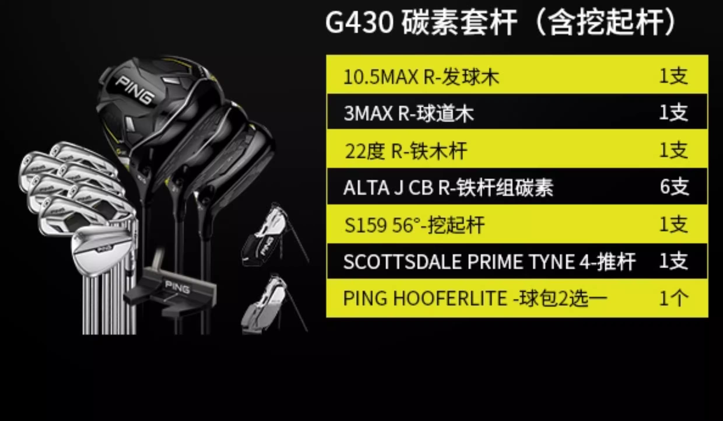 PING 高尔夫球杆 G430套杆高容错男士golf组合套杆 碳素R套杆(3木6铁1推1包)【不含挖起杆】