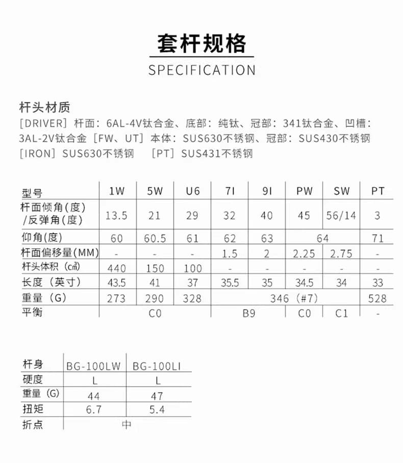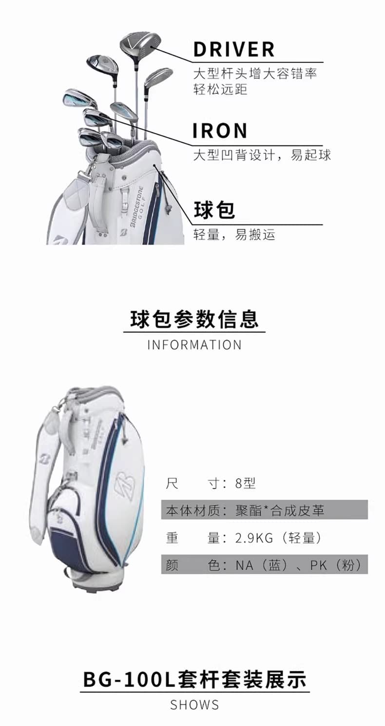 Bridgestone普利司通 高尔夫球杆 女士BG-100L系列初学球下场套杆 蓝色/粉色