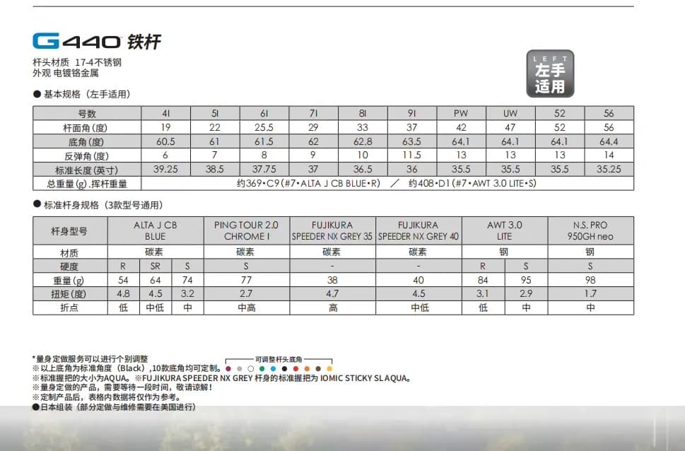 PING 高尔夫球杆 高尔夫球杆单支7号铁高弹稳定 G440 NS PRO NEO/R