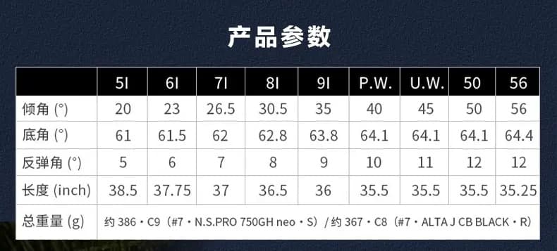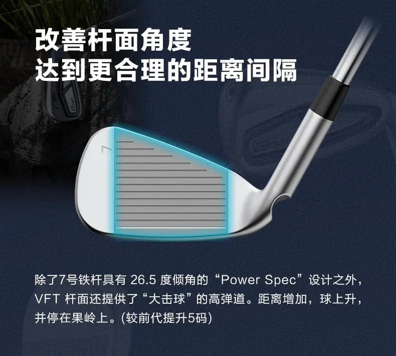 除了7号铁杆具有 26.5 度倾角的“Power Spec”设计之外