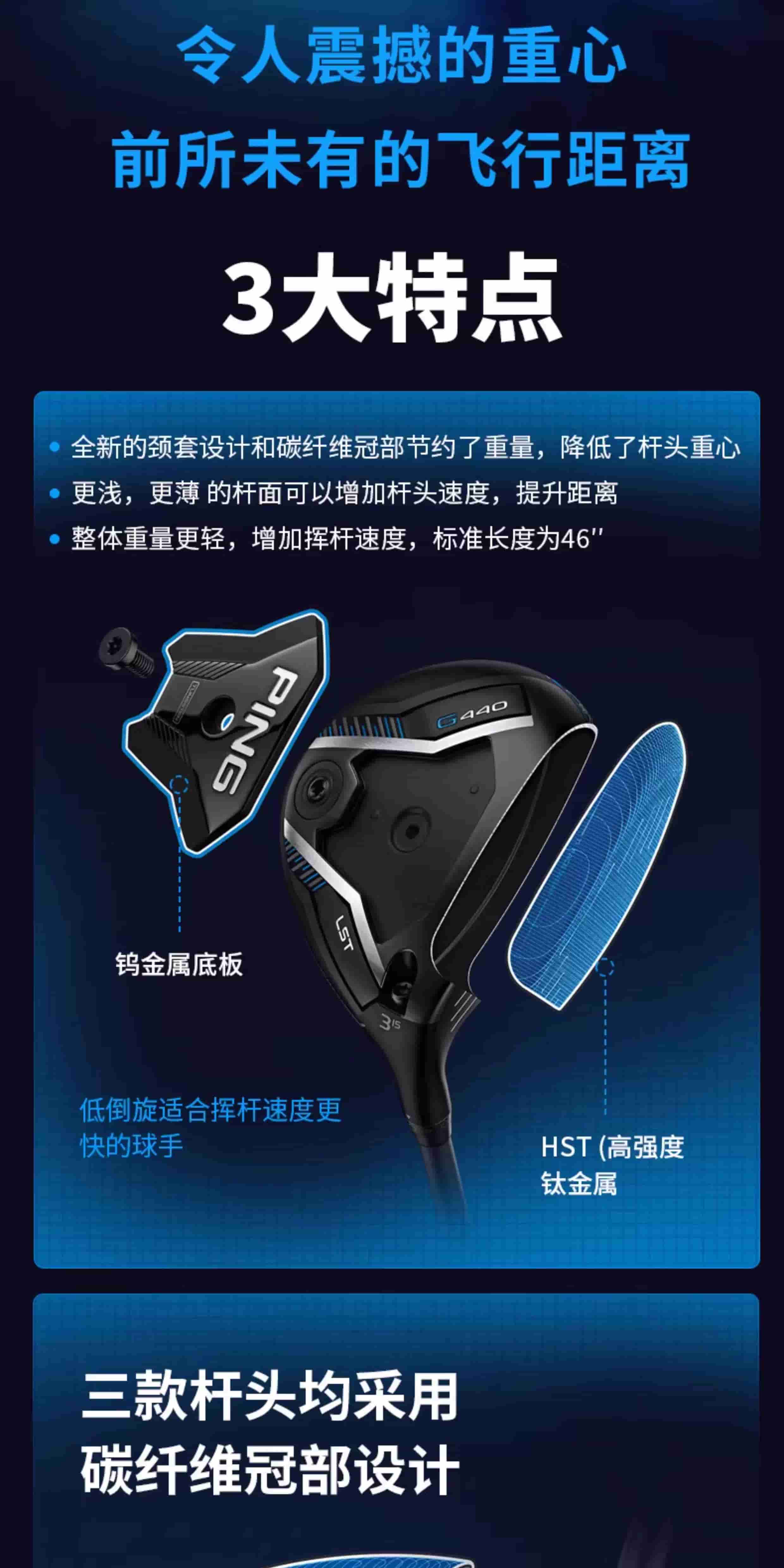 PING追求高MO1、深低重心,实现了稳定的飞行。