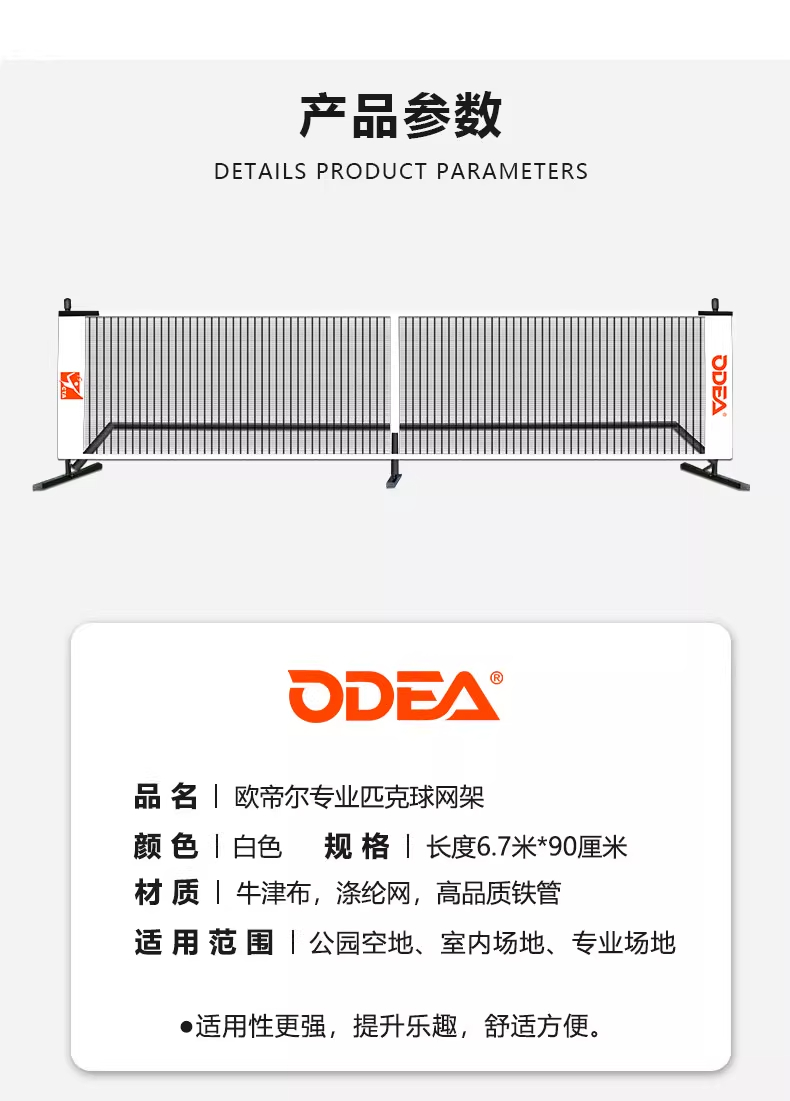 Odear欧帝尔匹克球网架 匹克网球网户外匹克球网架便携移动专业场地匹克球网架 TJ-6.7M 适用性更强,提升乐趣,舒适方便