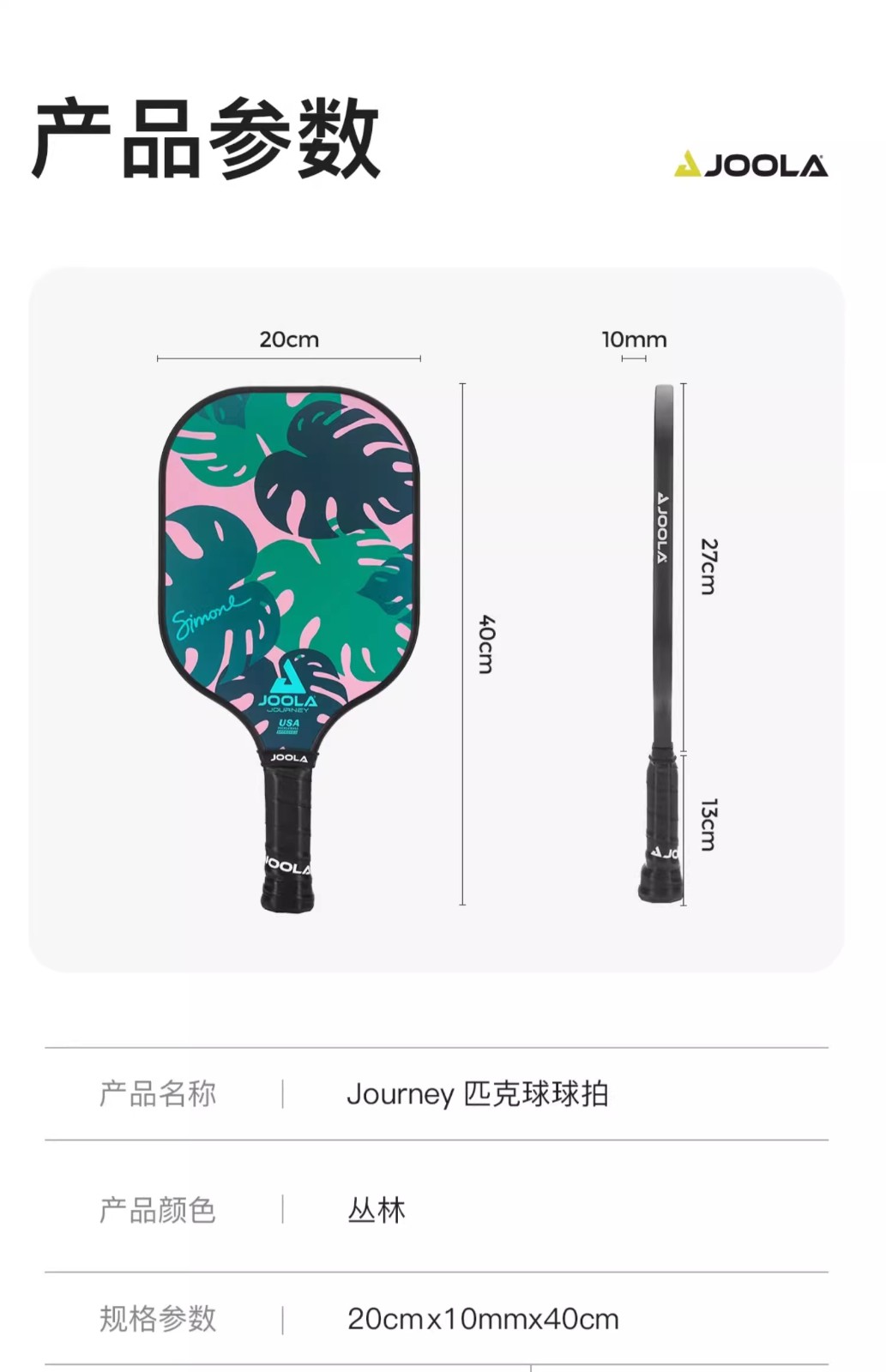 JOOLA优拉匹克球拍 USAPA认证新手入阶拍Journey-丛林 单拍 18358