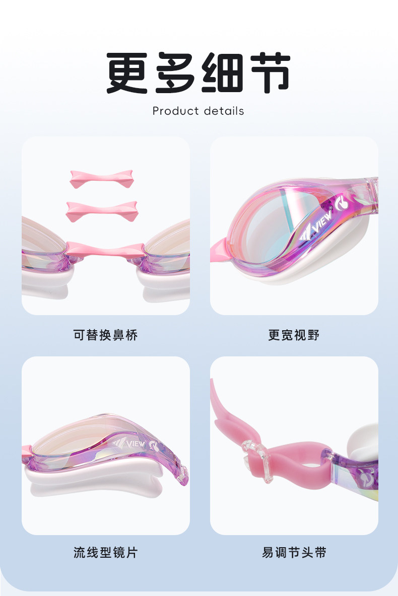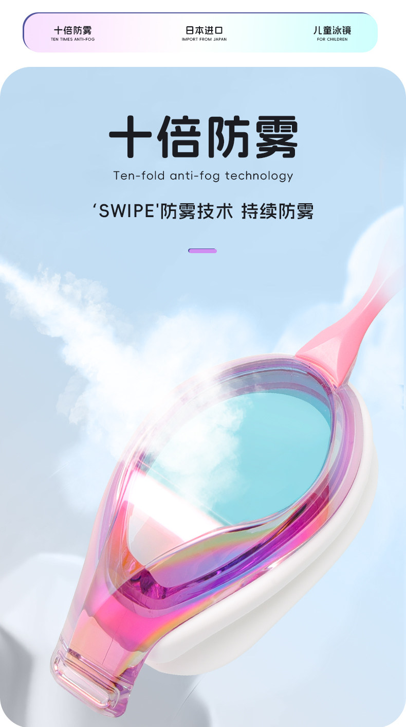 适配6-12岁儿童泳池训练、校园游泳课及亲子水上活动;多透光率镜片适配室内外场景,应对不同水质,覆盖游泳全阶段使用。